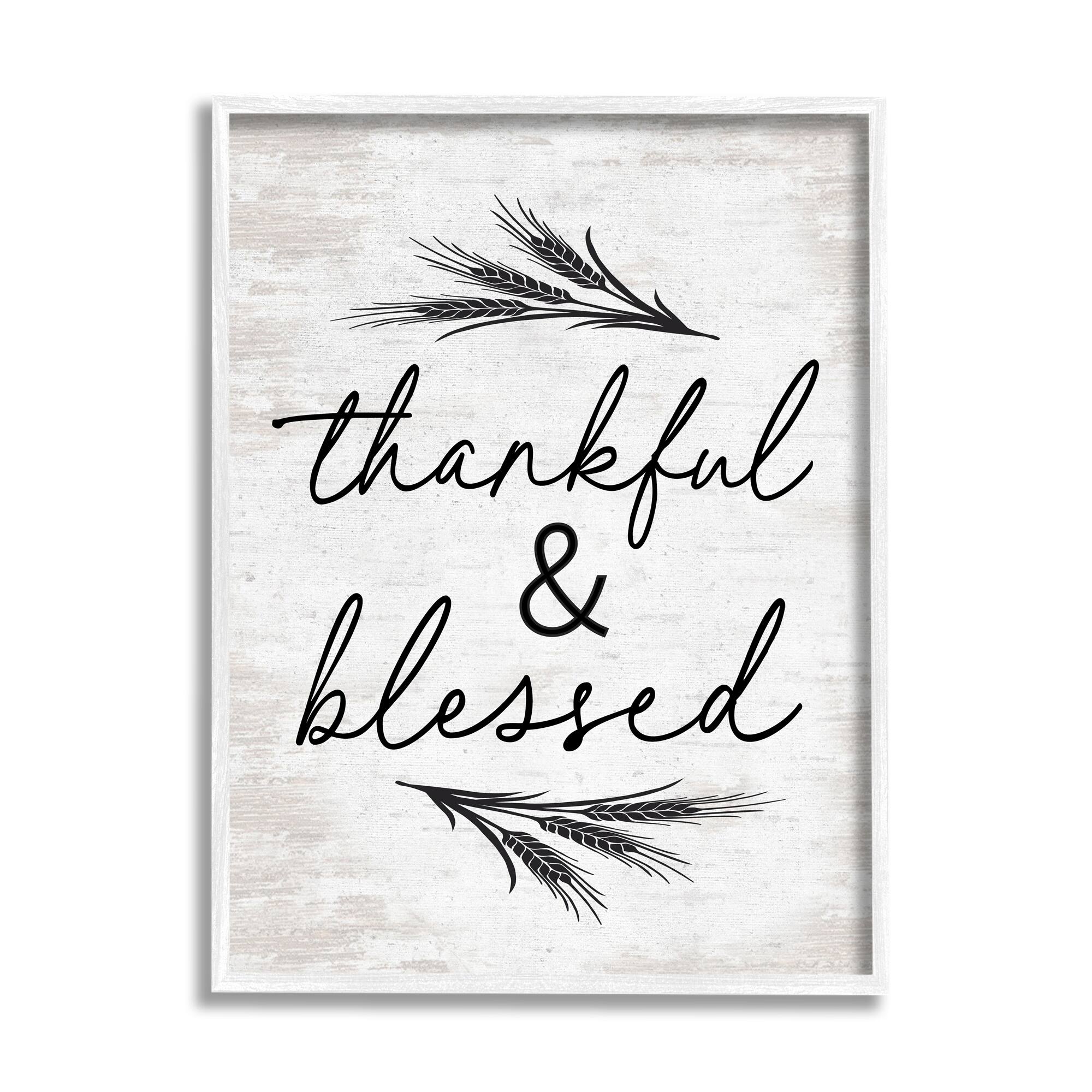 Stupell Industries Thankful & Blessed Rustic Wheat Sprig Motif Framed Wall Art, Design by Lettered and Lined - Off-White