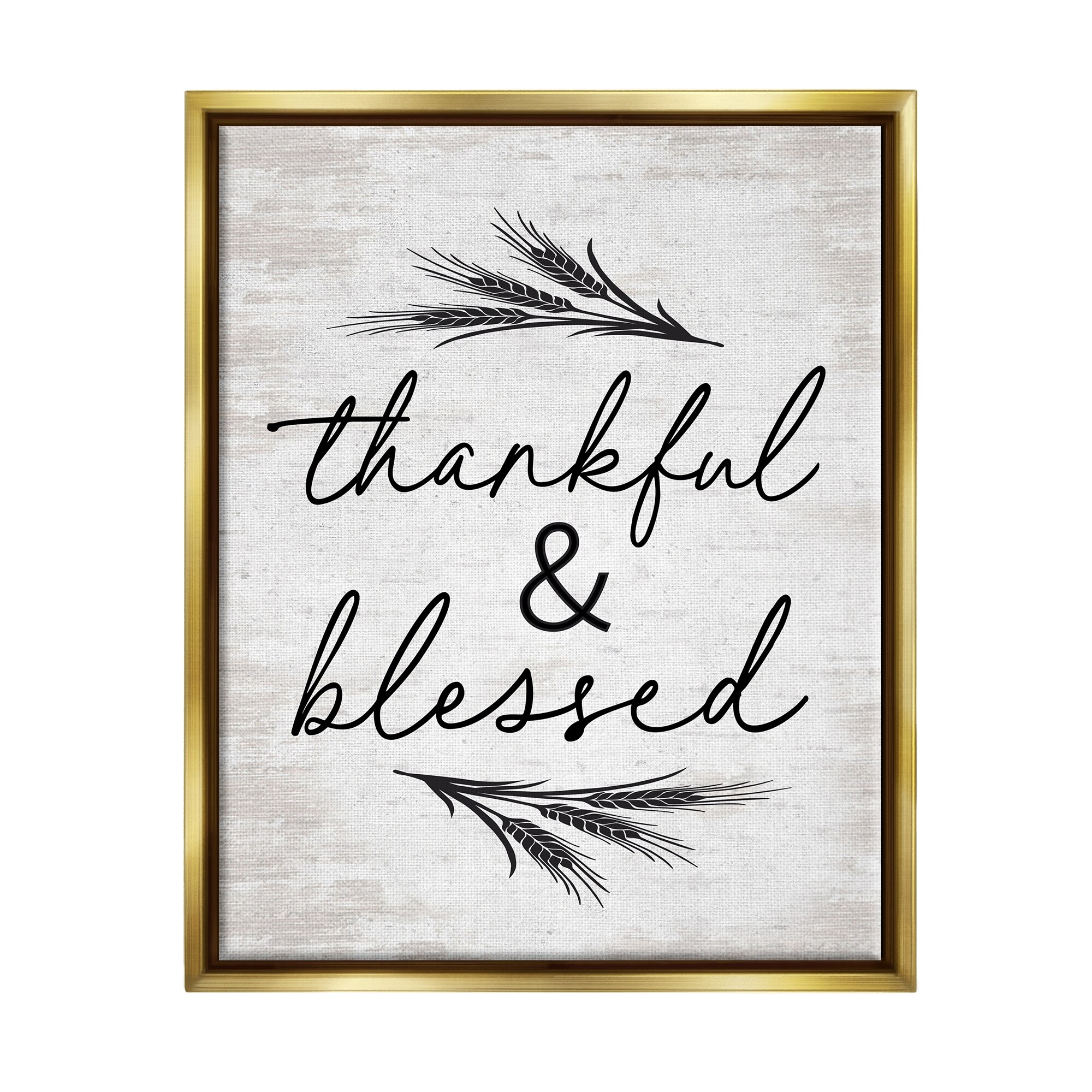 Stupell Industries Thankful & Blessed Rustic Wheat Sprig Motif Floater Frame, Design by Lettered and Lined