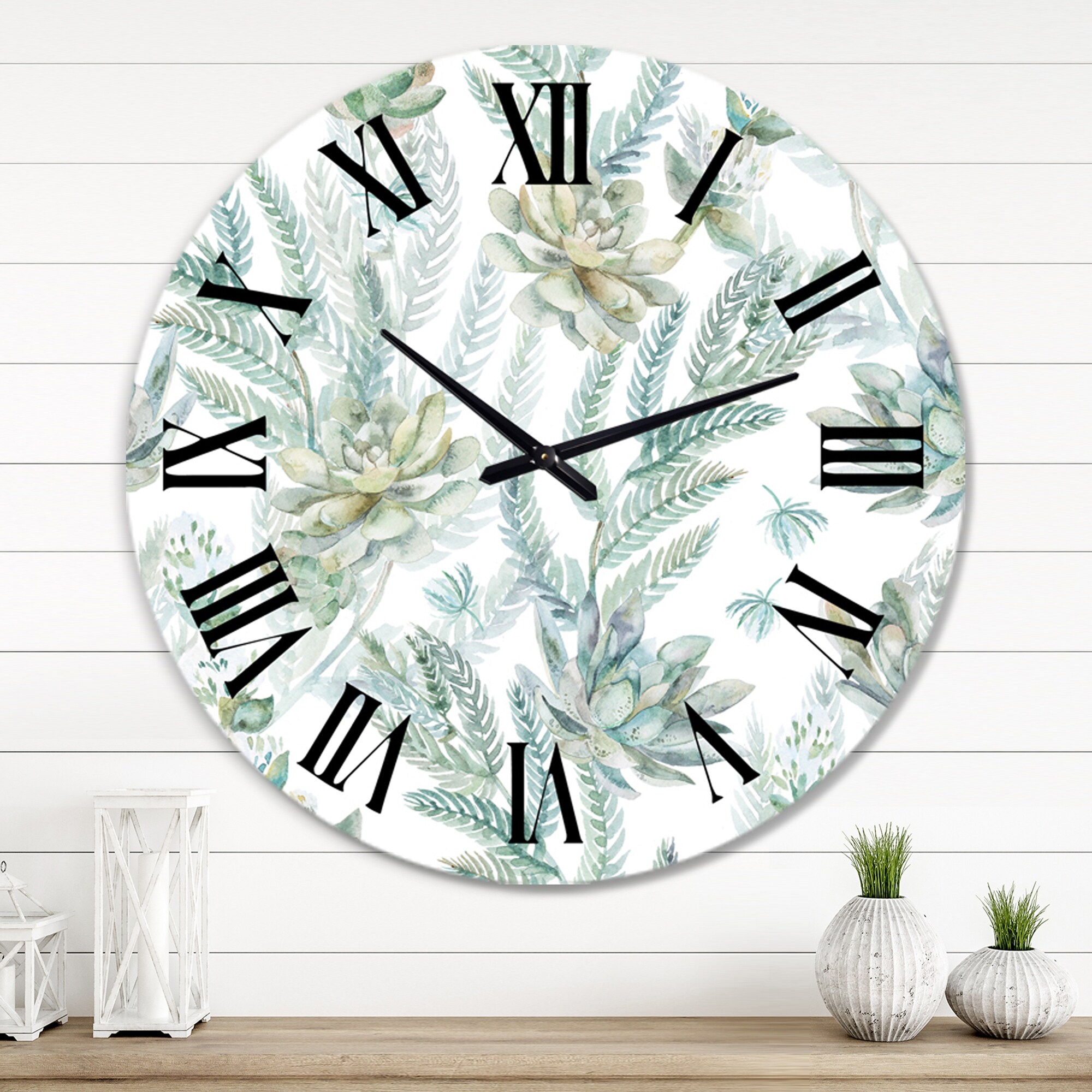 Designart 'Floral Seamless Pattern Succulents Ferns Thorns' Farmhouse wall clock