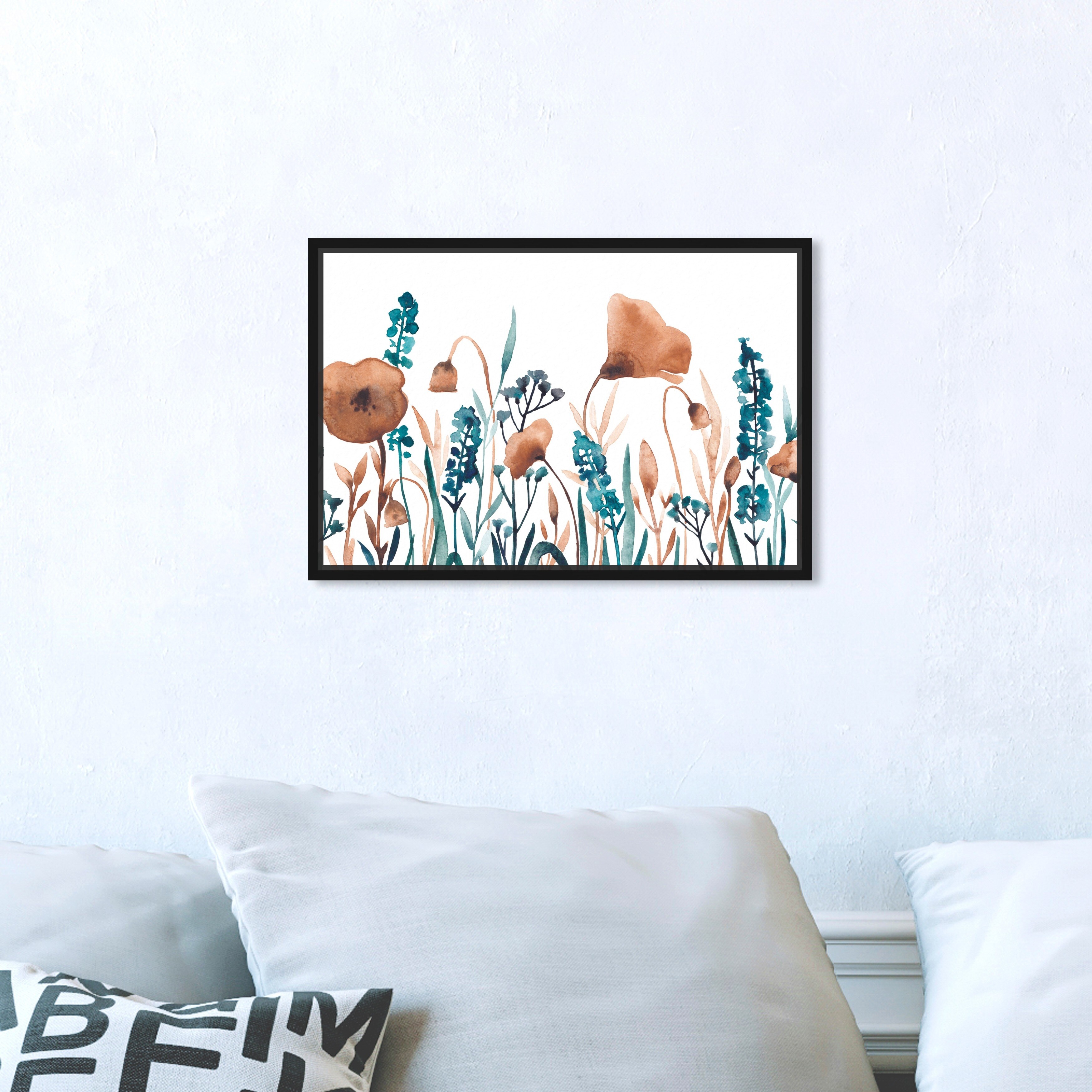 Oliver Gal 'Topaz Field' Floral and Botanical Wall Art Framed Canvas Print Gardens - Blue, Brown
