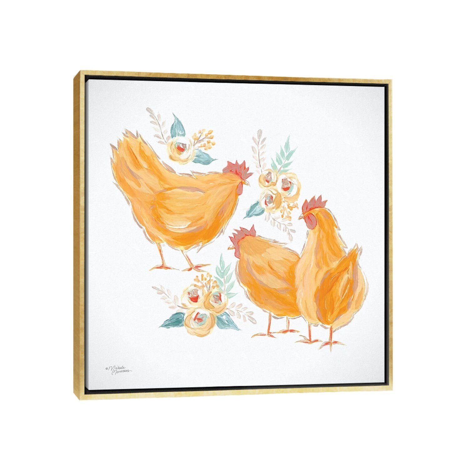 iCanvas "Trio of Floral Roosters" by Michele Norman Framed