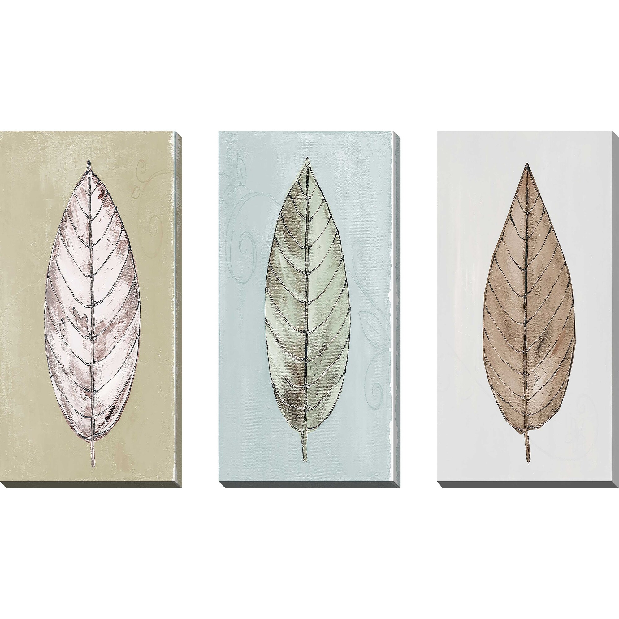 "Neutral New Leaf Trio" 3 Piece Set on Canvas