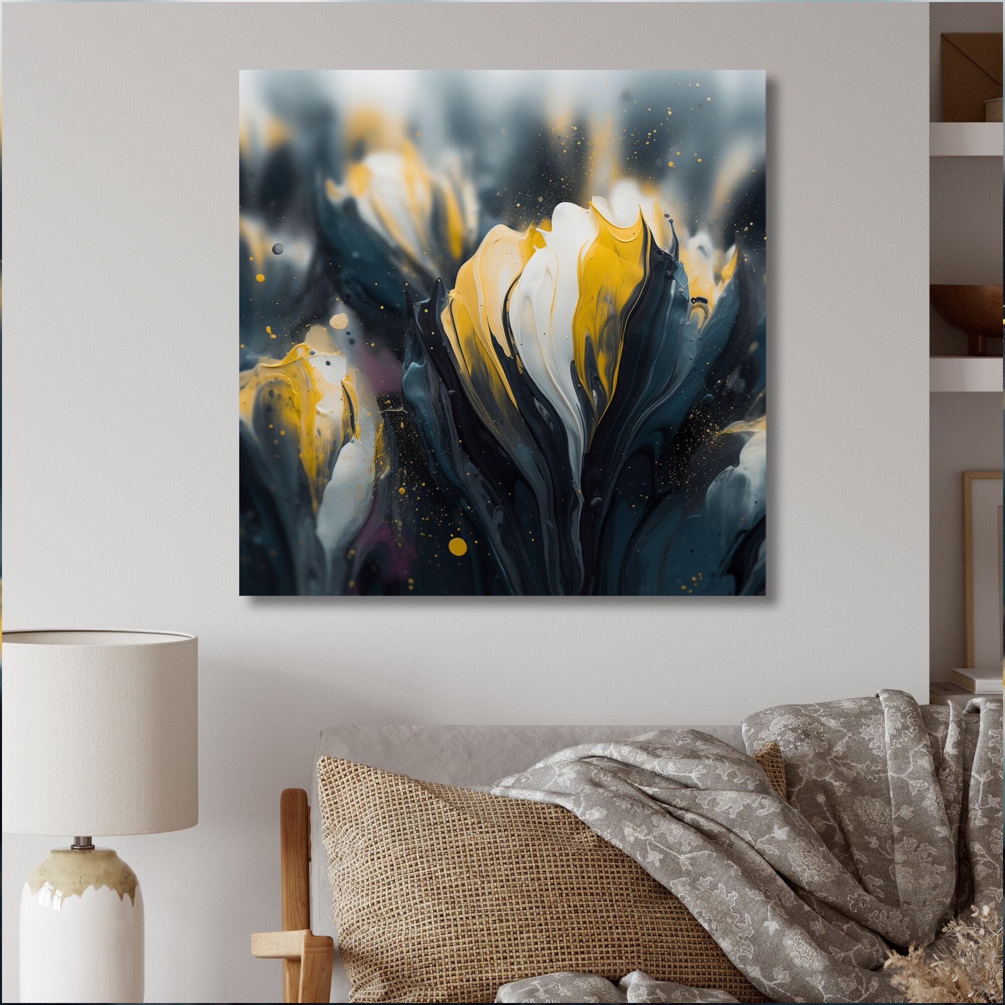Designart "Multicolor Liquid Ink Tulip Flowers II" Floral & Botanical Framed Canvas Art Print