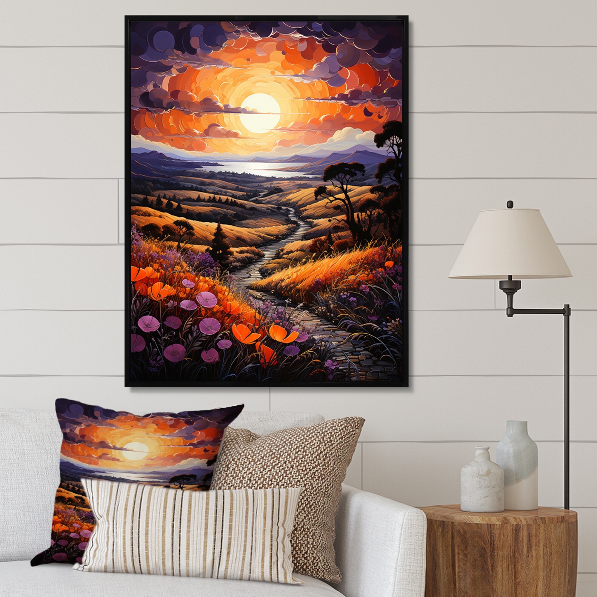 Designart "Meadow Twilight Pointillism" Meadow Framed Canvas Wall Art