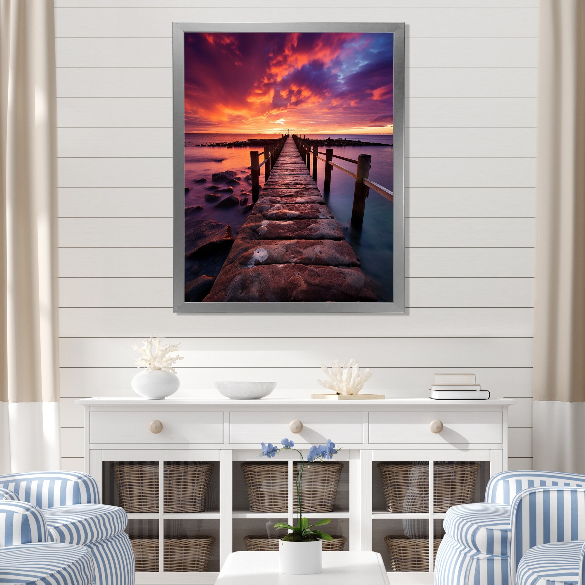 Designart "Pier Twilight Retreat I" Coastal Pier Framed Canvas Art Print