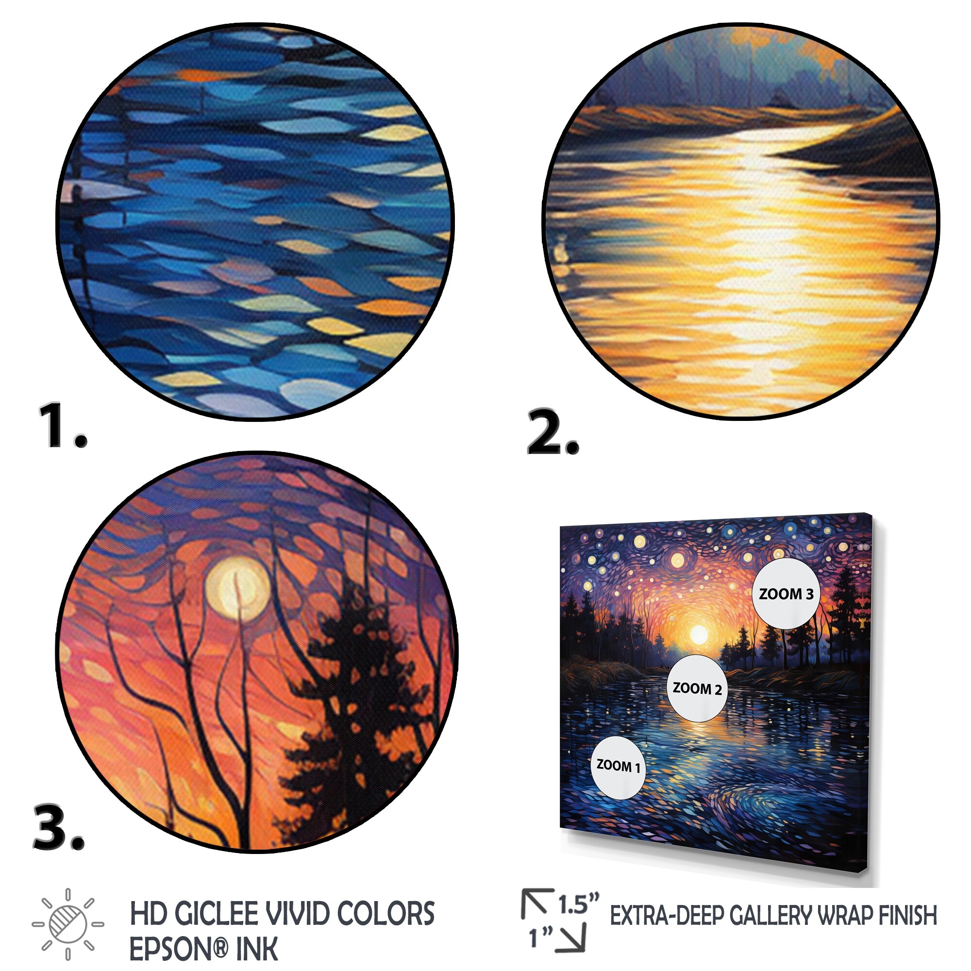 Designart "Vangogh Twilight Reflections Pointillism" Vangogh Framed Wall Art Living Room