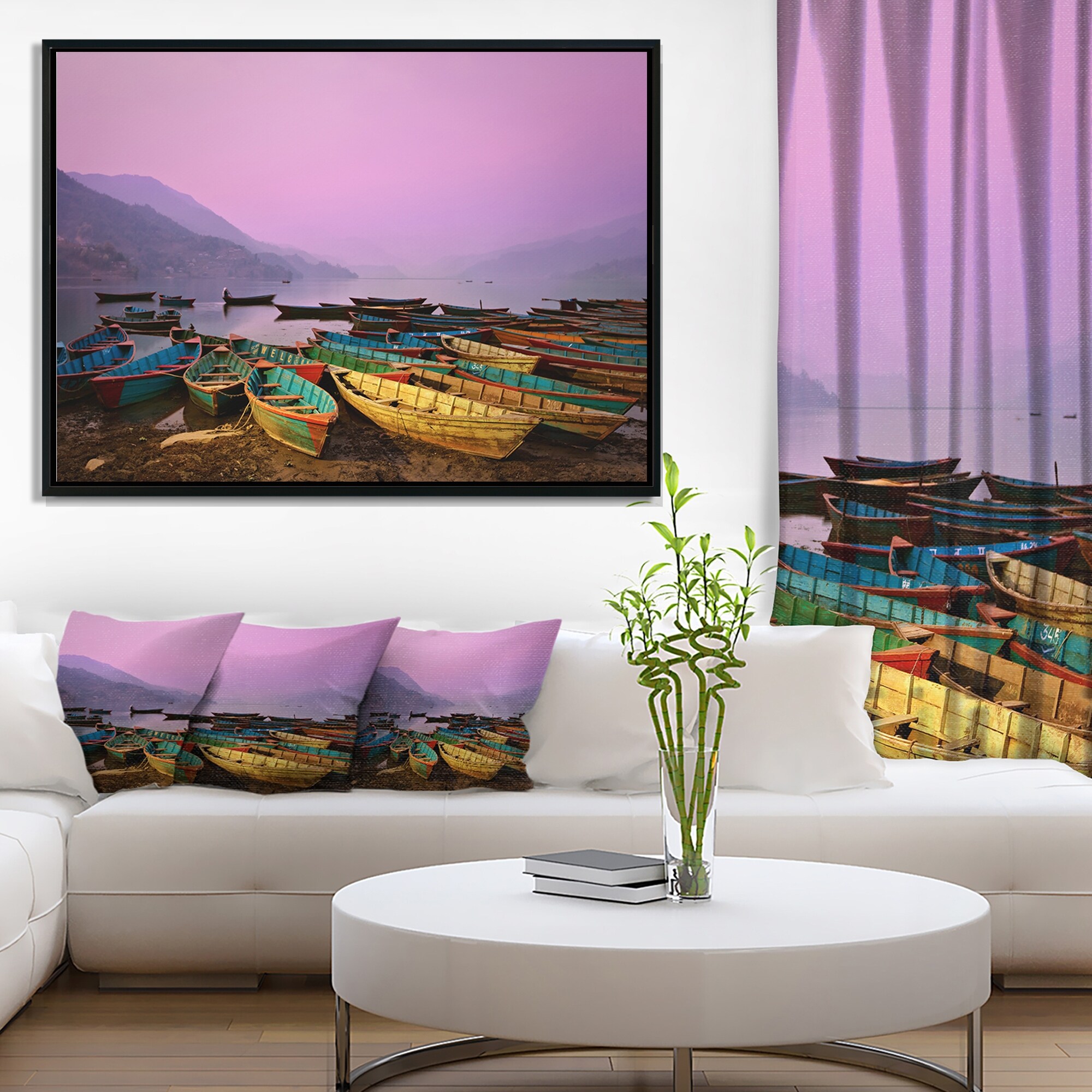 Designart "Boats under Twilight Sky in Phewa" Boat Framed Canvas Art Print