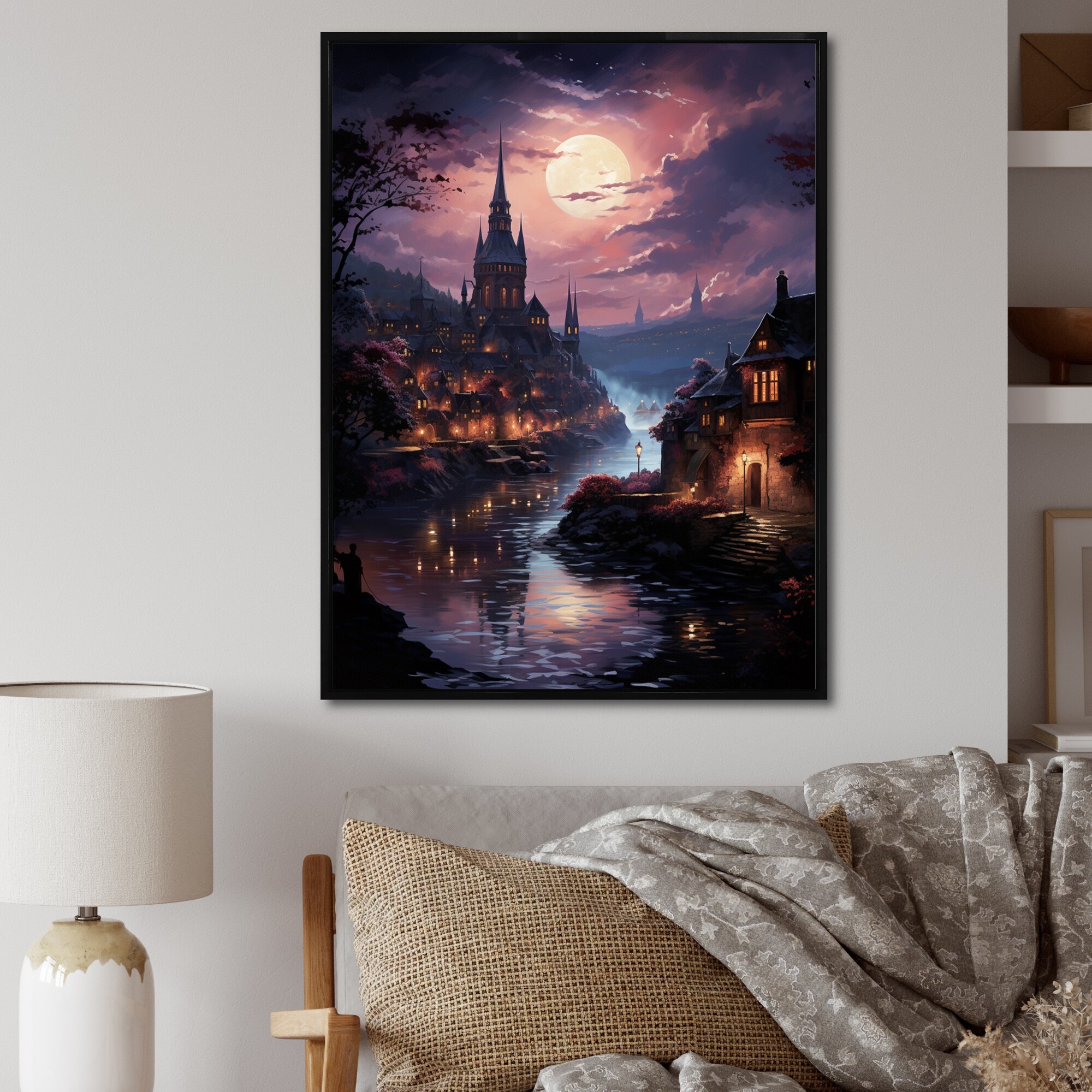 Designart "Castles Twilight Majesty Deep I" Castles Framed Canvas Wall Art