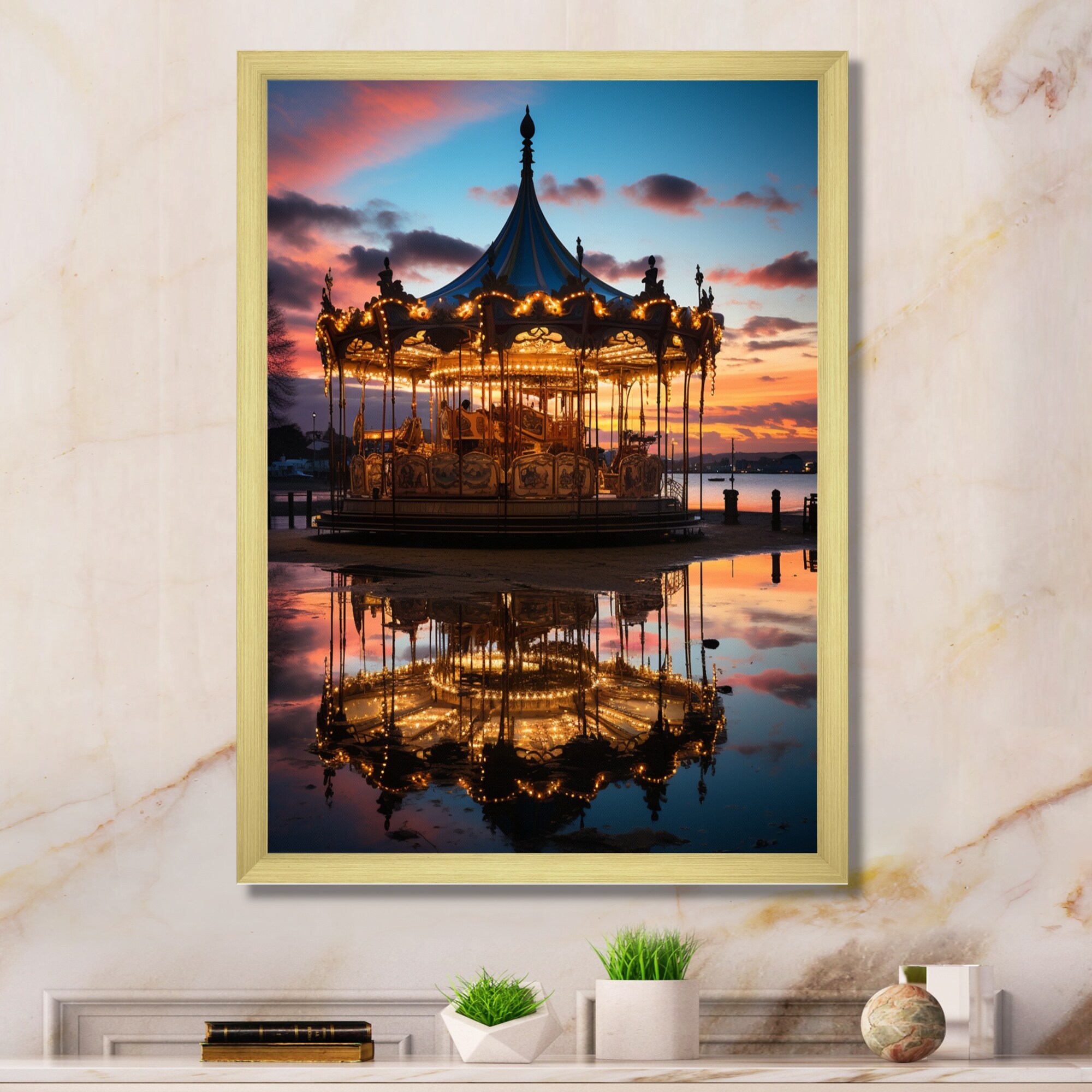Designart "Carousel Carousel At Twilight" Carousel Framed Canvas Prints