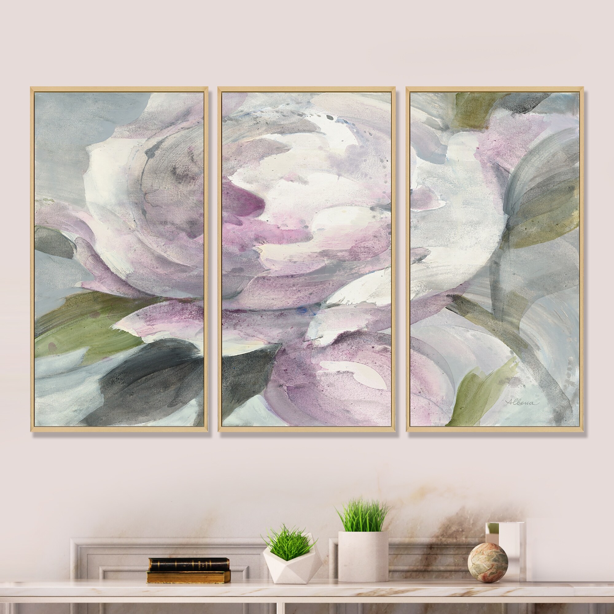 Designart "Twilight Peony" Shabby Chic Framed Wall Decor Set of 3 - 4 Colors of Frames