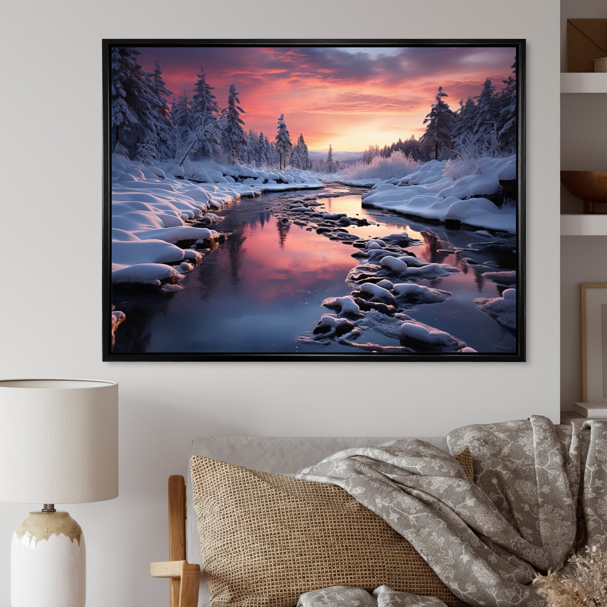 Designart "White Fushia Winter Twilight II" Winter Landscape Framed Canvas Prints