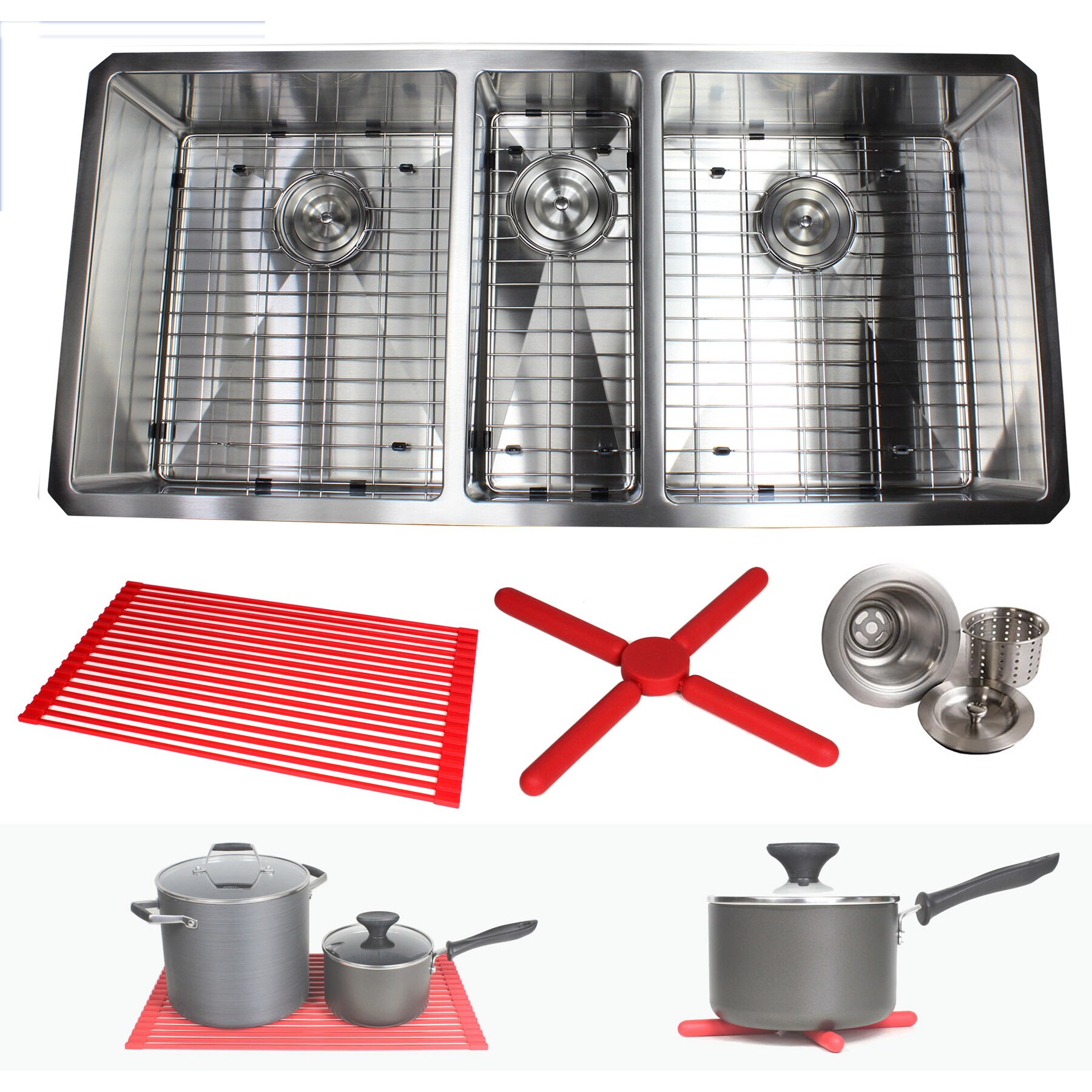 42-inch Stainless Steel Triple Bowl 15mm Radius Undermount Kitchen Sink with Accessories