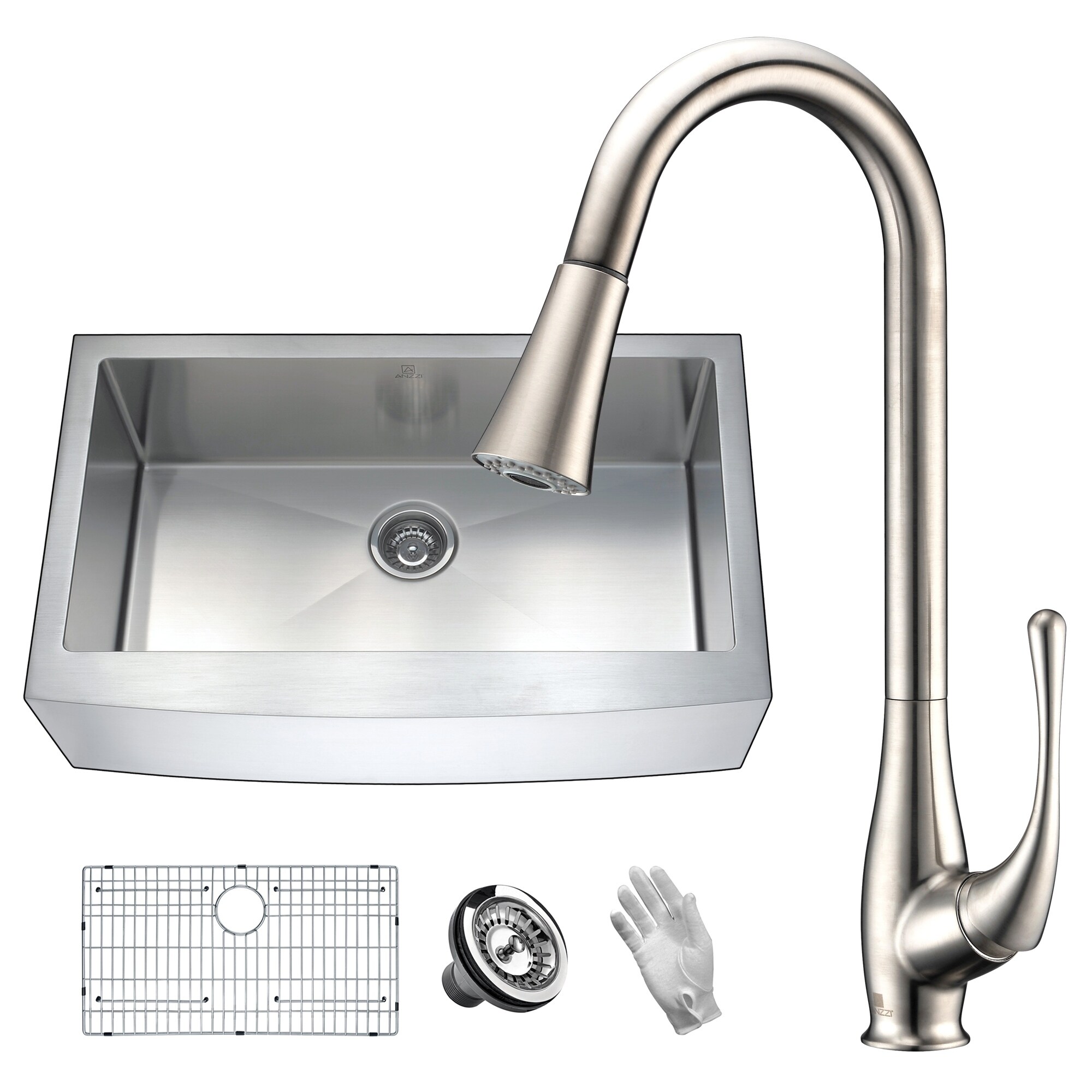 ANZZI Elysian Farmhouse Stainless Steel 36 in. Single Bowl Kitchen Sink with Faucet in Brushed Nickel