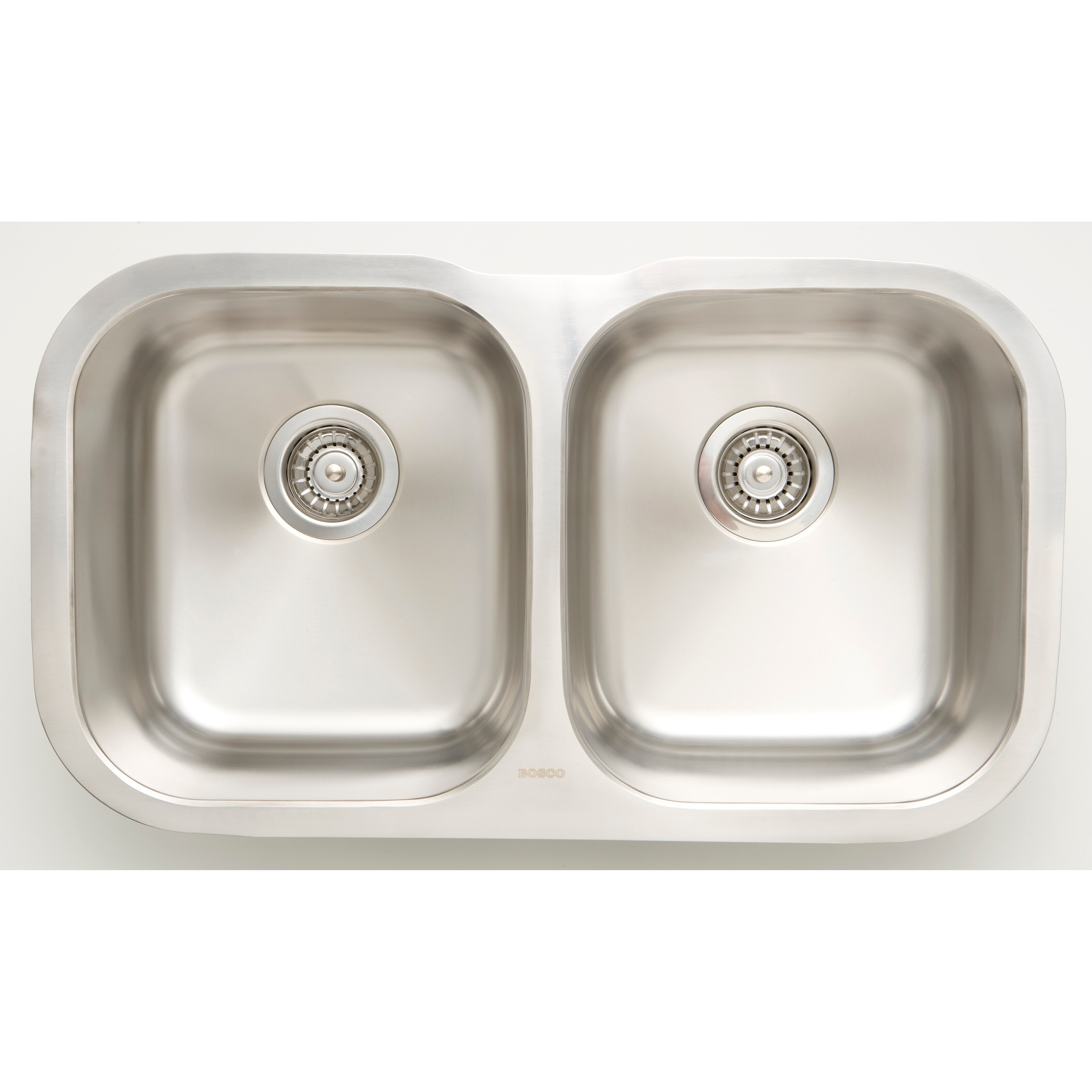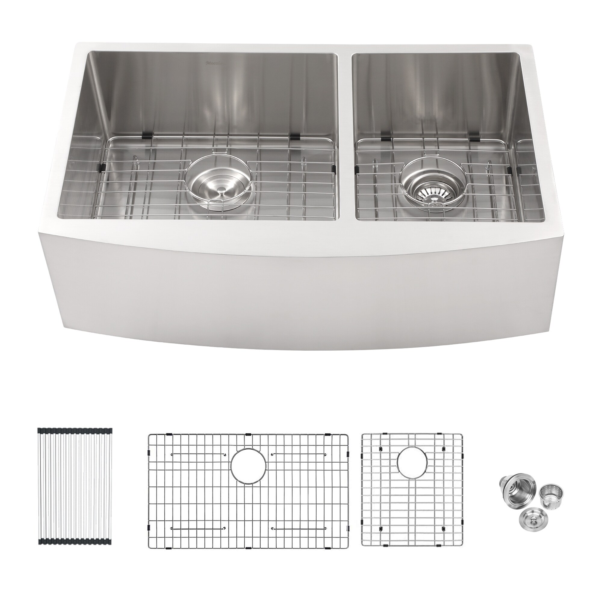 33-in 16 Gauge Stainless Steel Double Bowl Farmhouse Kitchen Sink