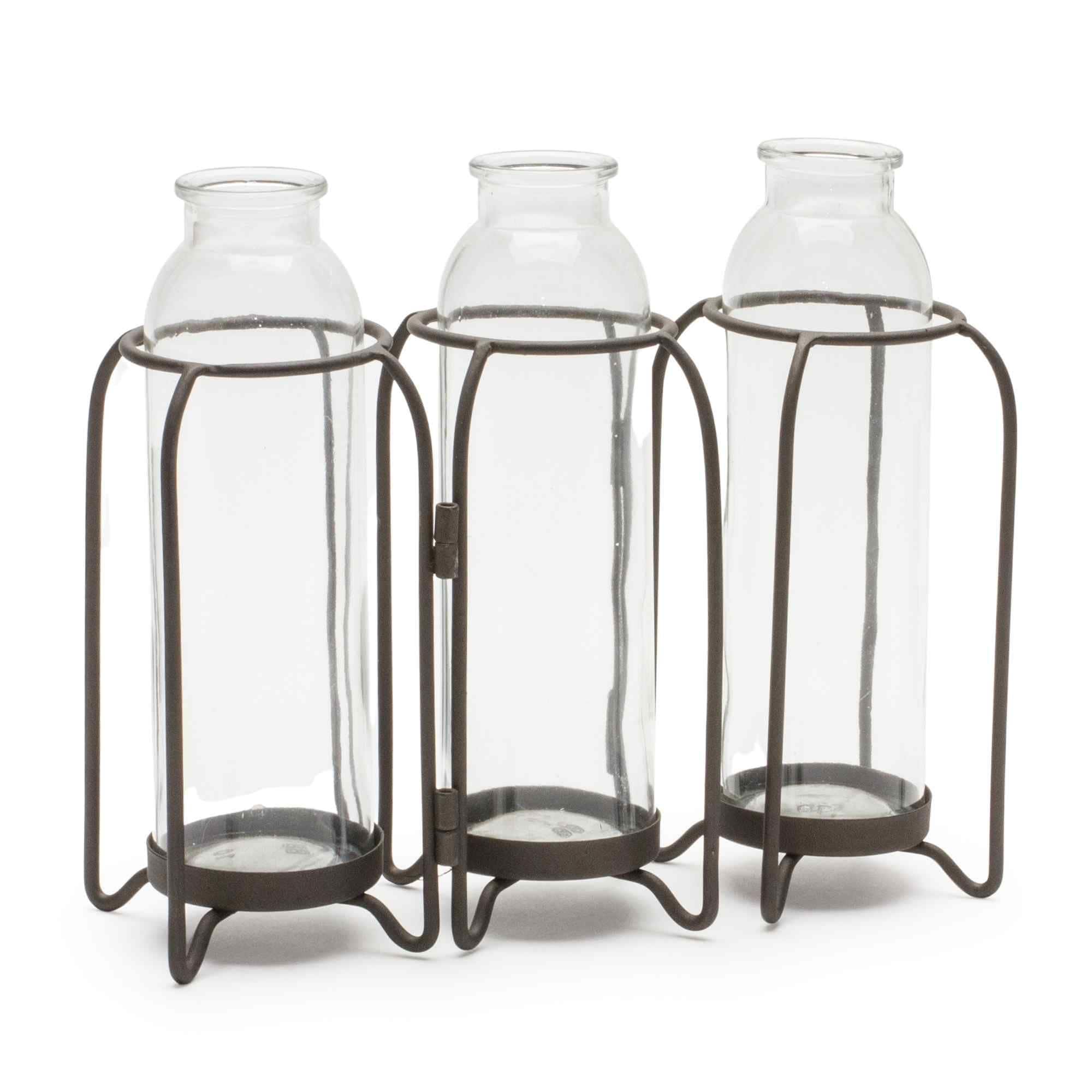 Vase in Holder (Set of 4) 10.25" x 7.5"H Glass/Metal