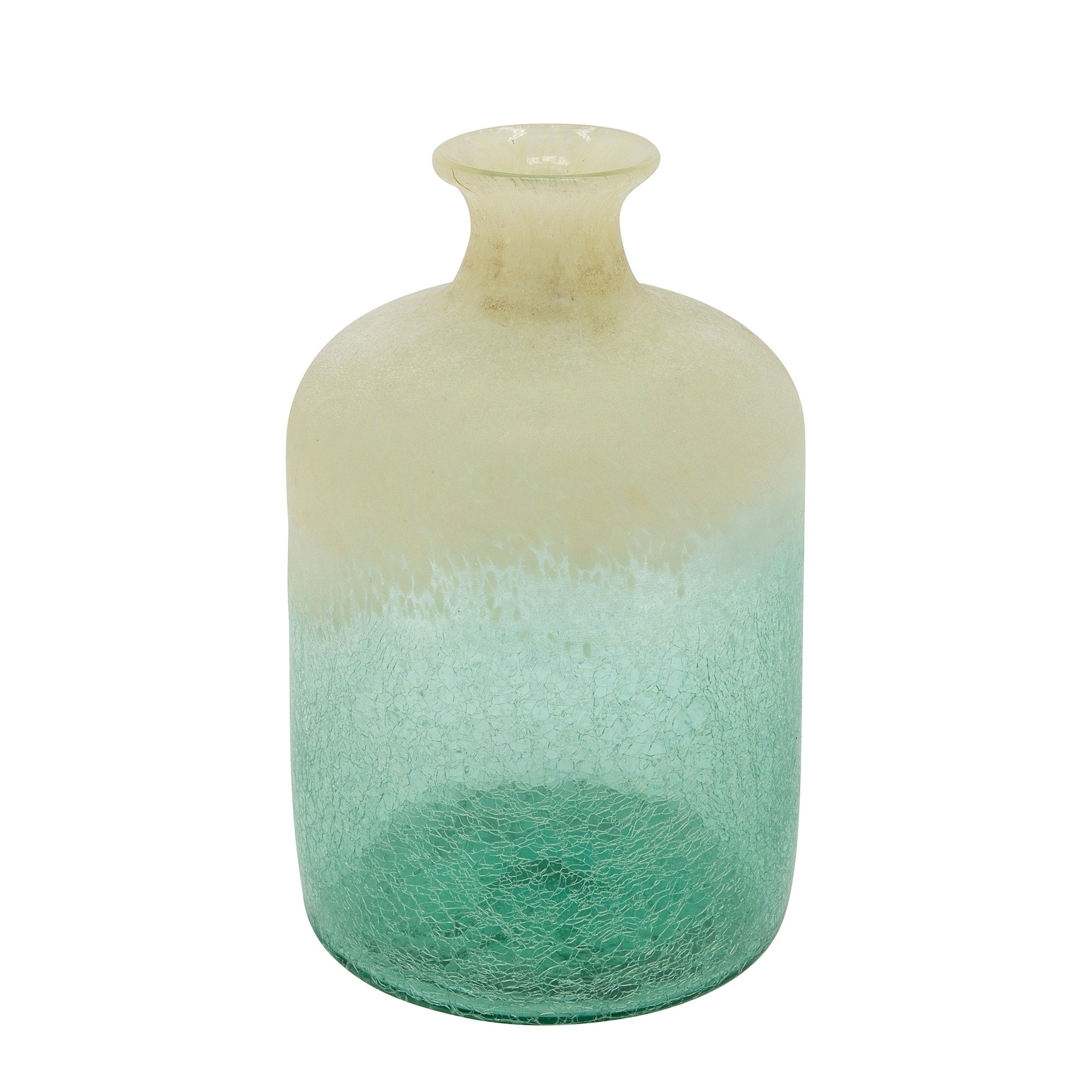 12 Inches Frosted Glass Vase with Crackled Design, Beige and Green