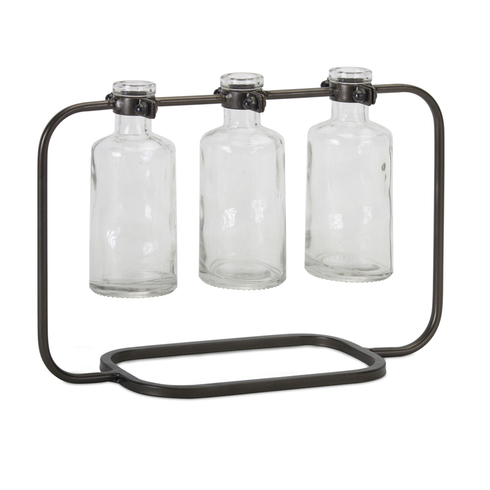 15" Brown and Clear Glass Decorative Bottle Vases in Stand