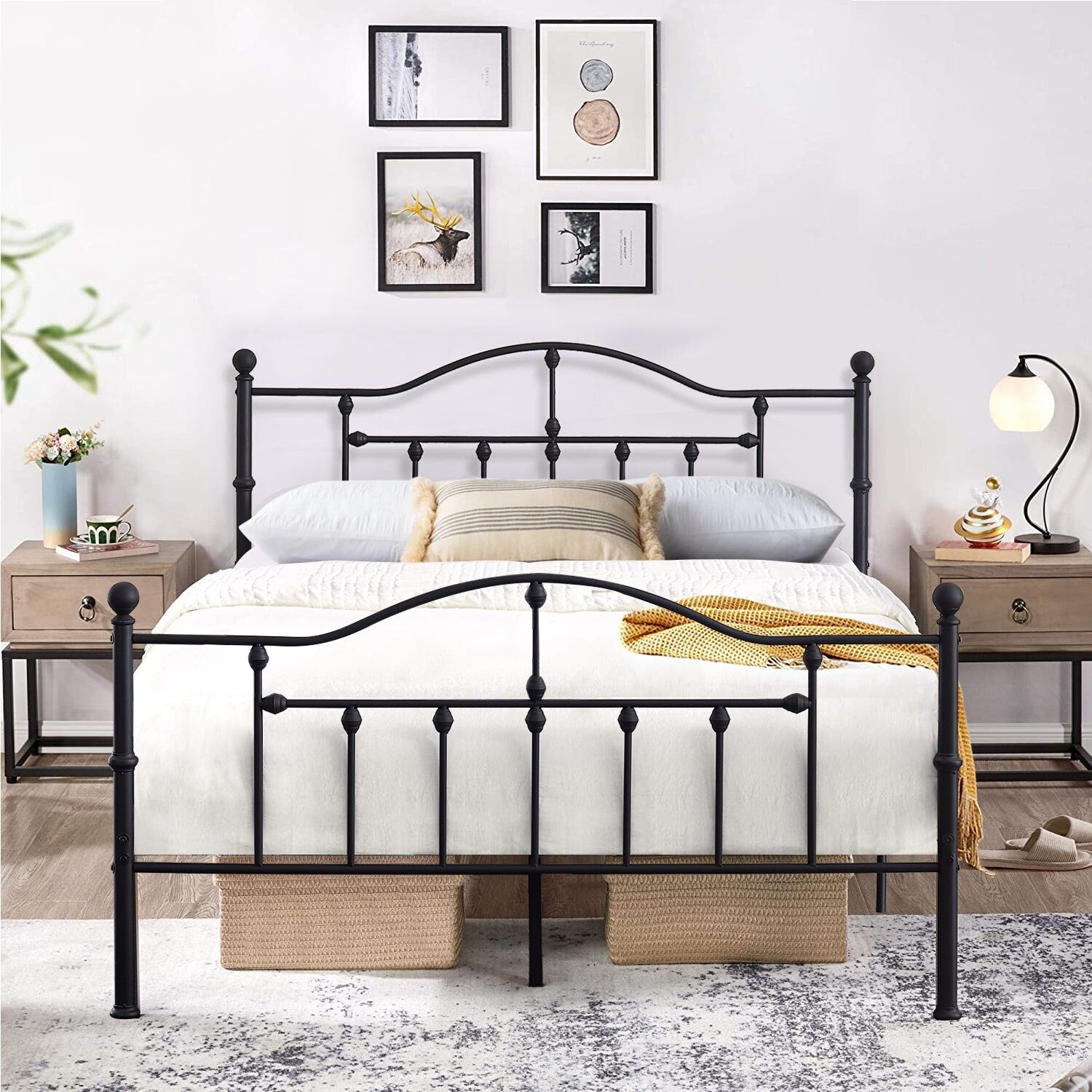 Javlergo Metal Platform Bed Frame with Victorian Headboard & Footboard