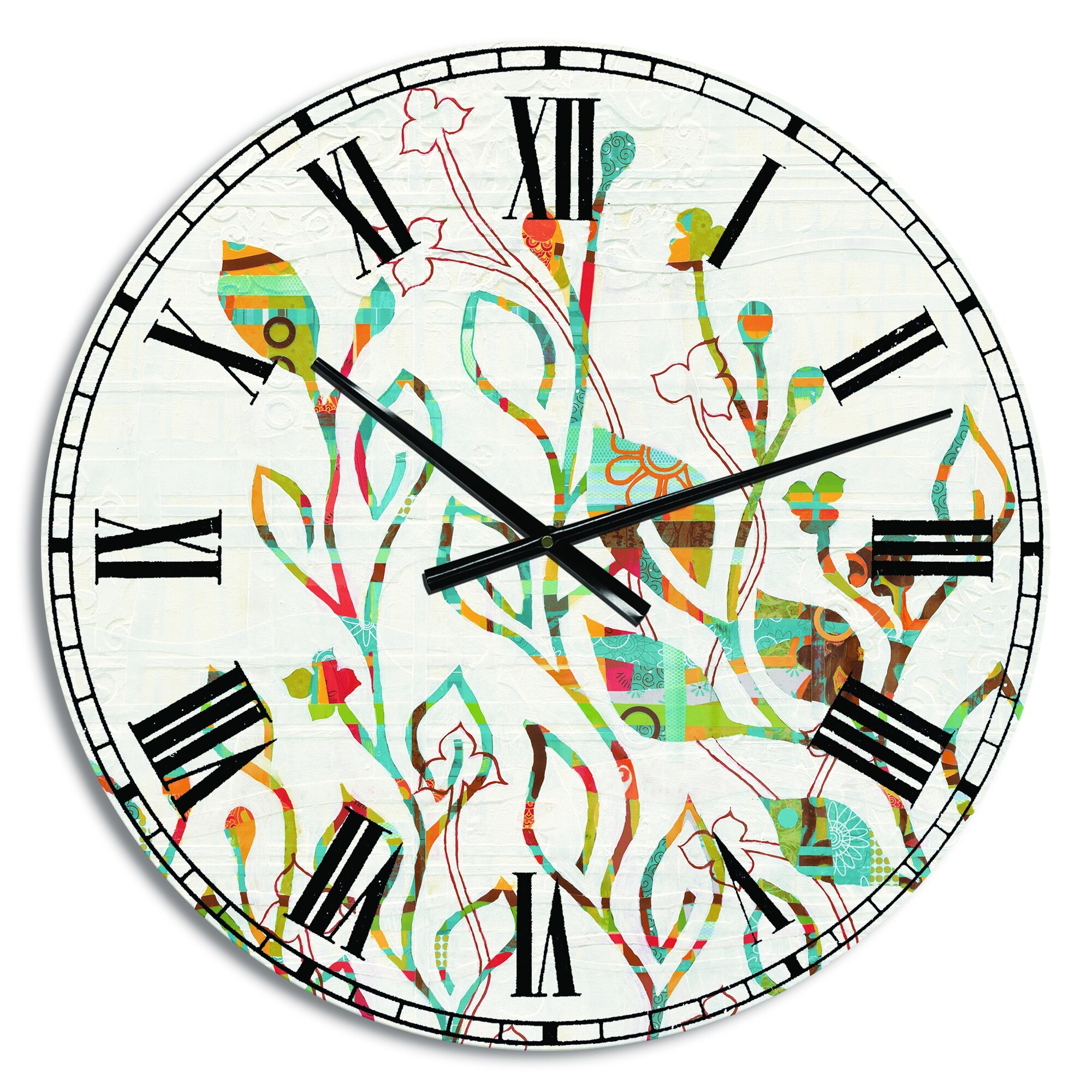 Designart 'Rainbow Coloured Vines And Flowers' Cabin & Lodge Large Wall CLock