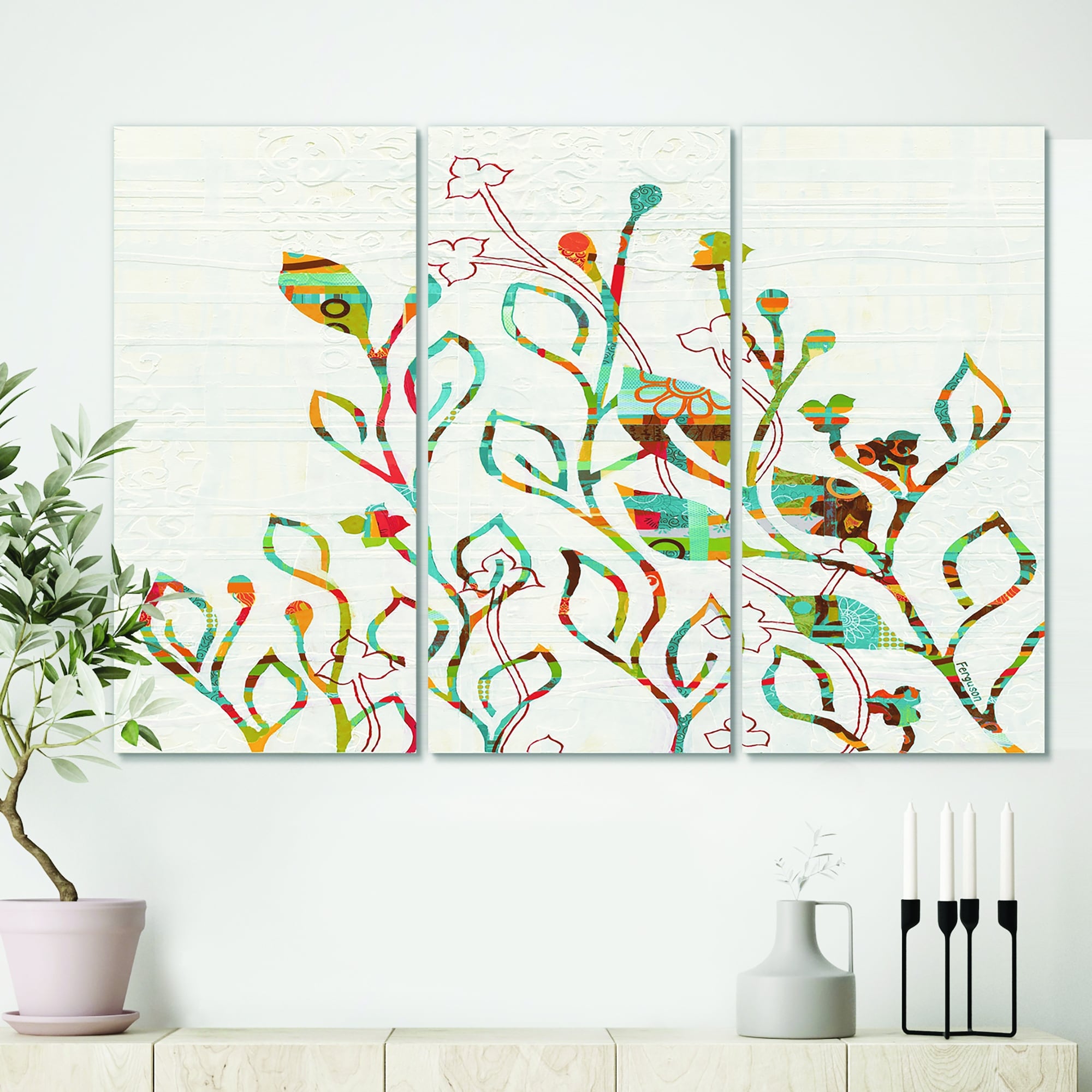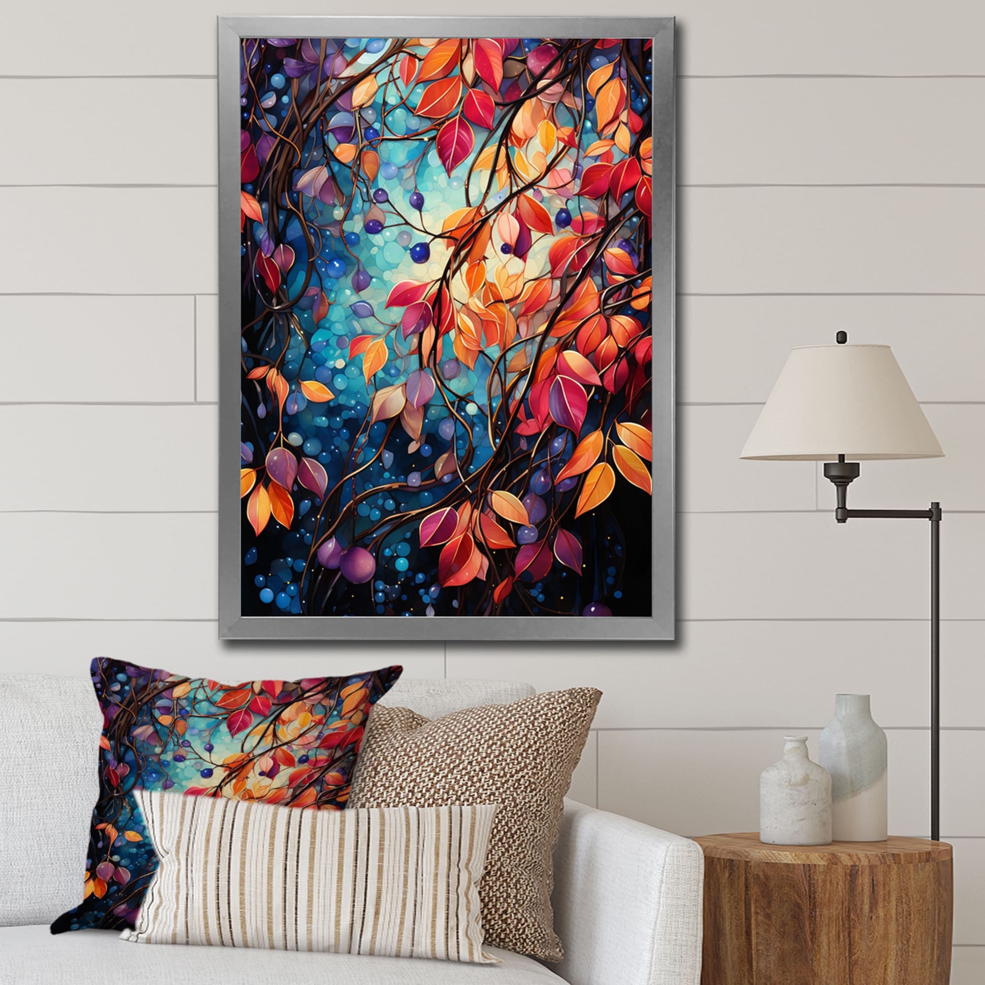 Designart "Multicolor Vibrant Vines II" Abstract Botanicals Framed Canvas Wall Art