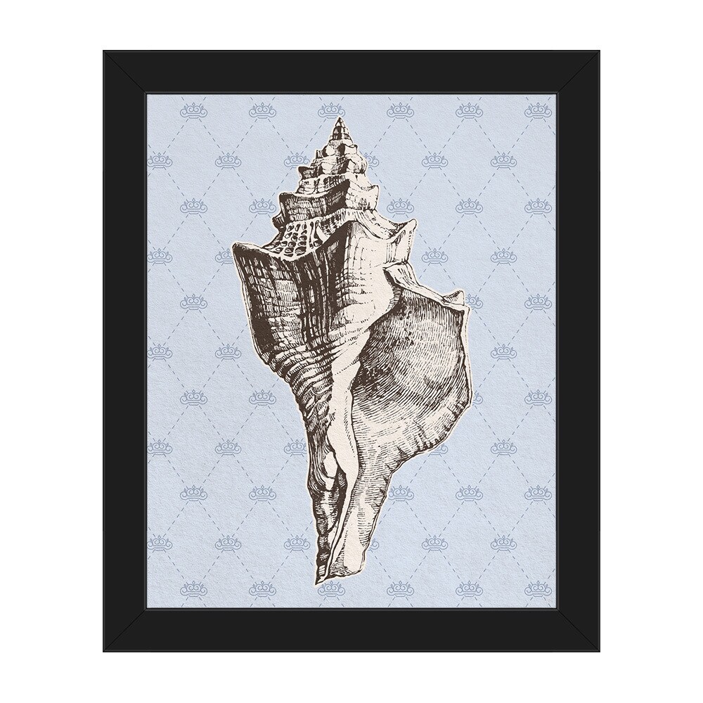 Vintage Conch Shell Ocean' Framed Canvas Wall Art