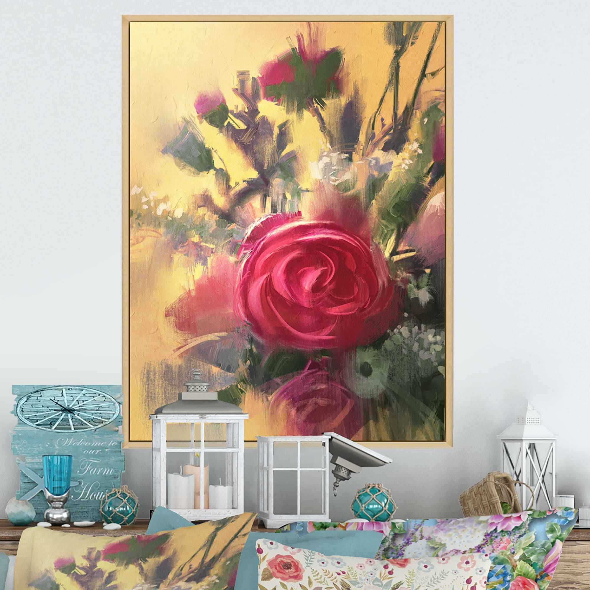 Designart "Grunge Bouquet of Pink Roses" Farmhouse Framed Canvas Wall Art