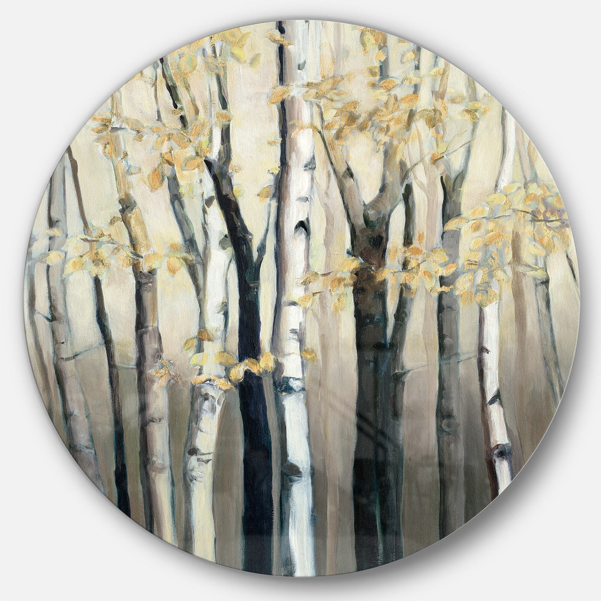 Designart 'Golden Birch Forest III' Farmhouse Metal Circle Wall Art
