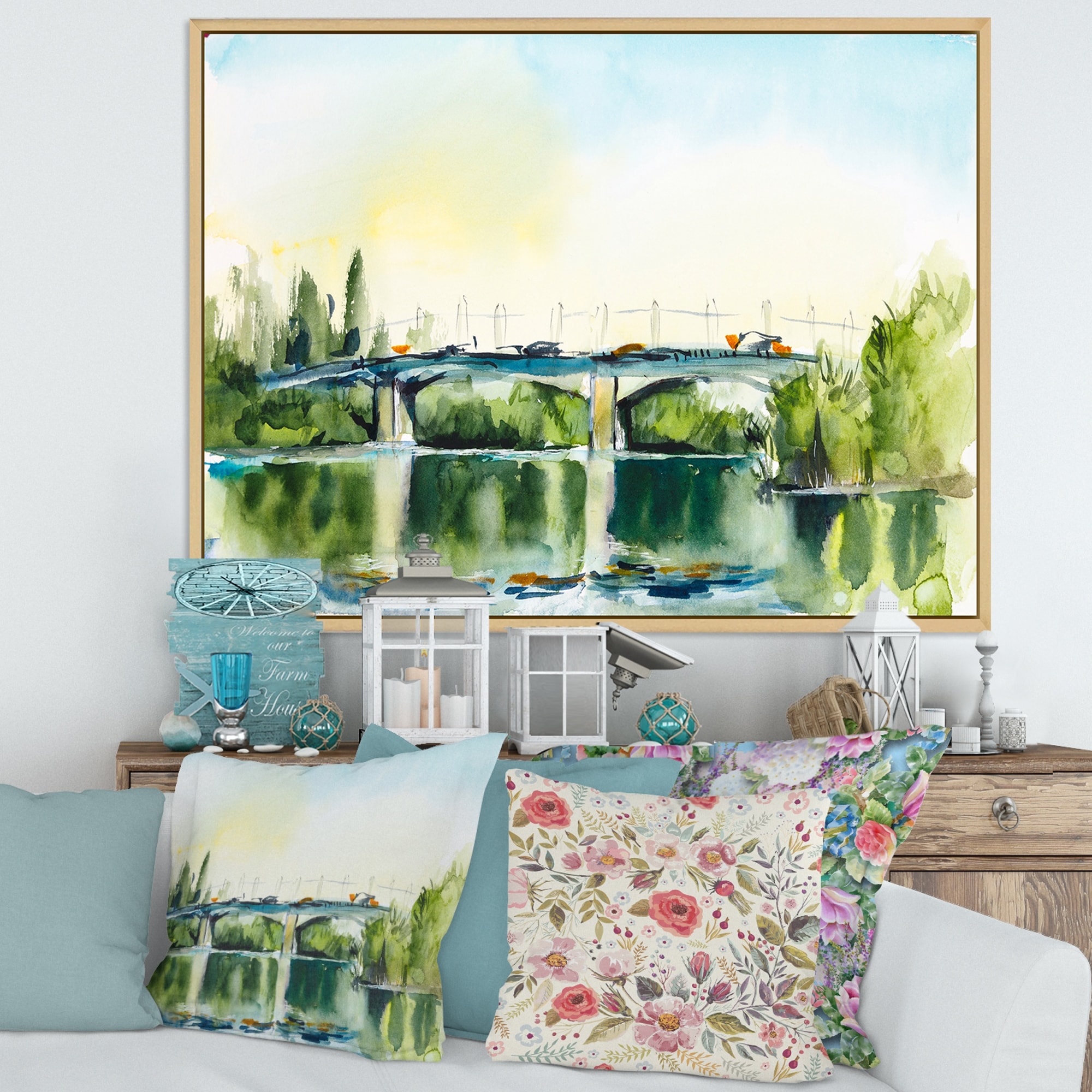 Designart "Landscape With Old Bridge in the Countryside" Traditional Framed Canvas Wall Art Print