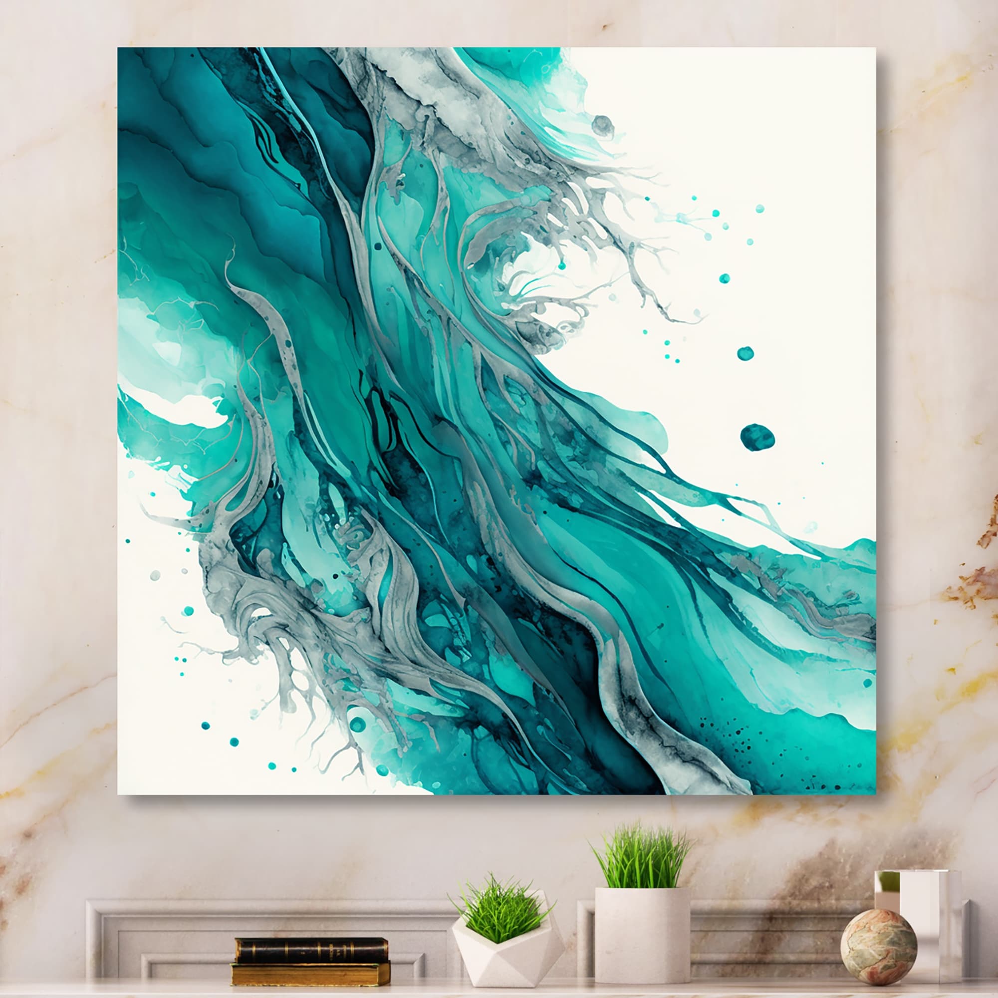 Designart "Turquoise Waves in Paradise VII" Abstract Liquid Ink Canvas Wall Art