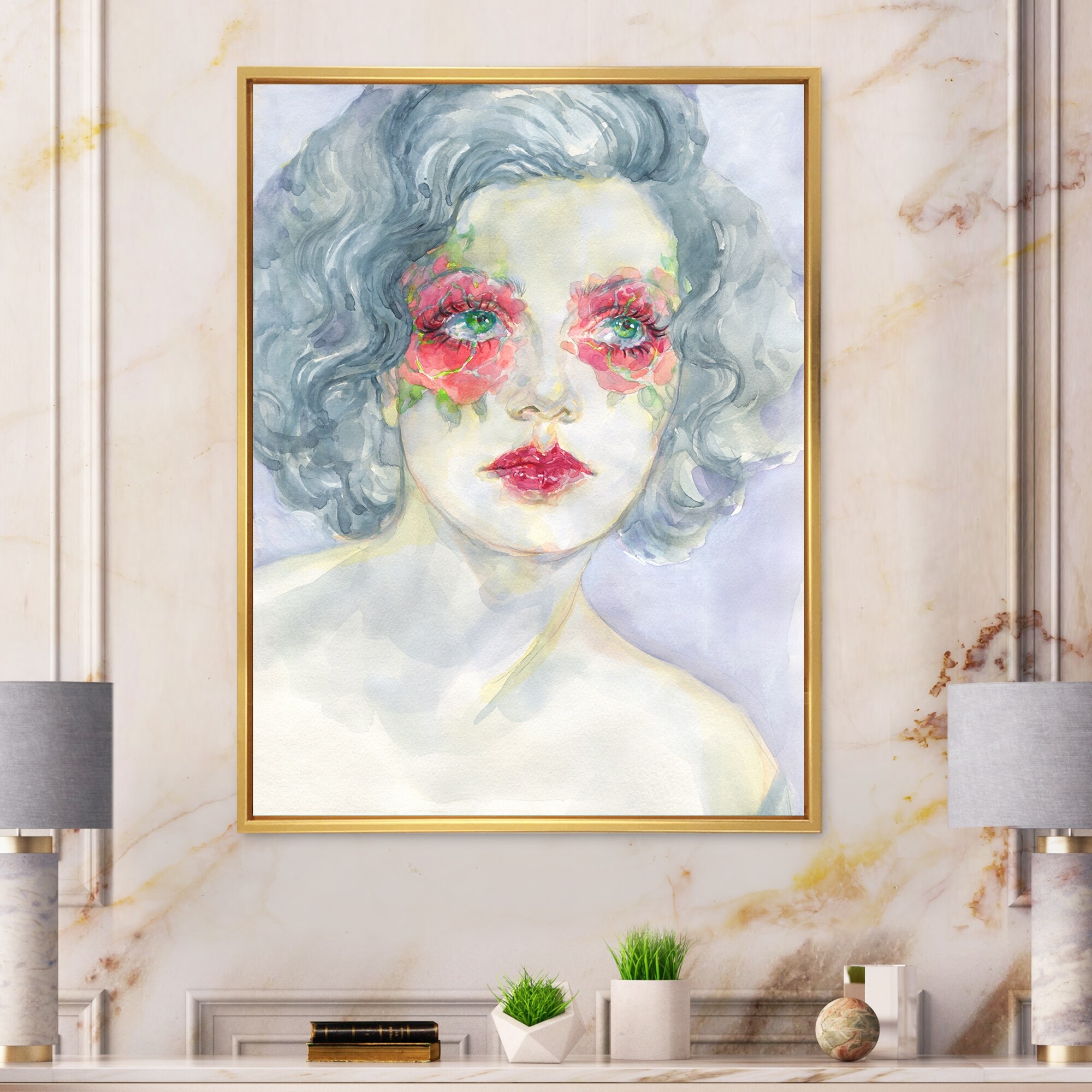 Designart "Liquid Ink Woman Portrait" Glam Framed Wall Art