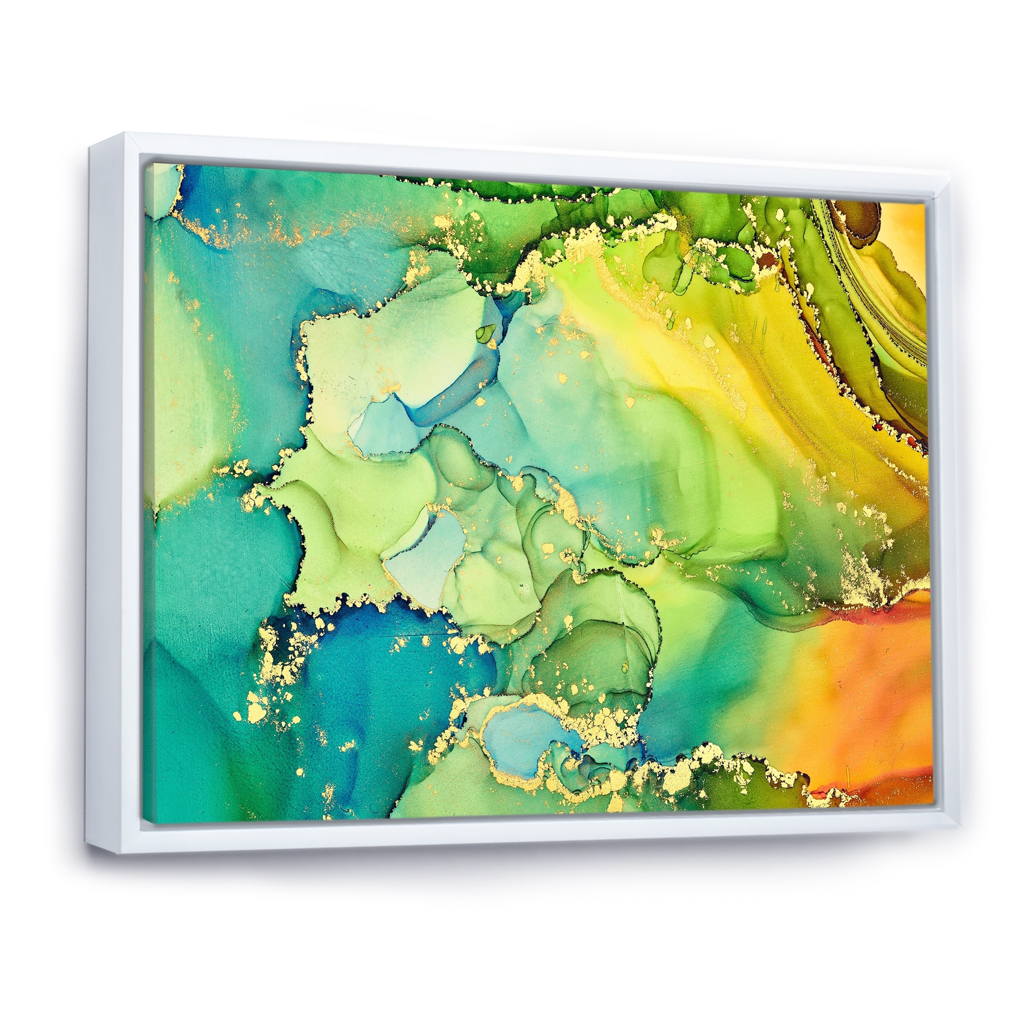 Designart "Green And Yellow Luxury Abstract Fluid Art" Modern Framed Canvas Wall Art Print