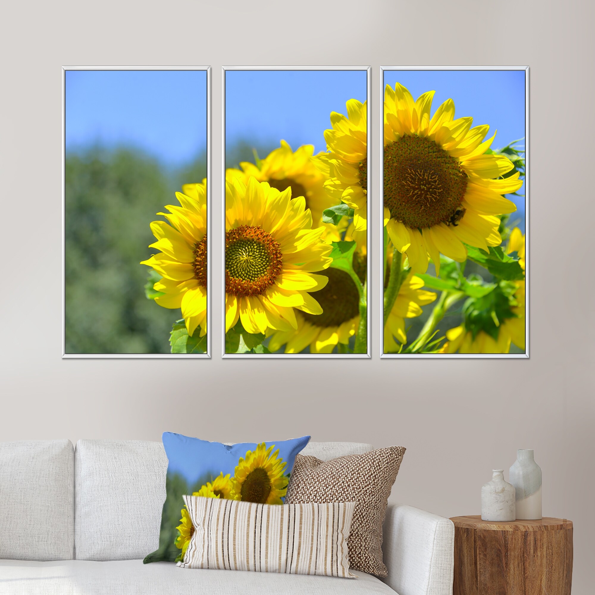 Designart "Beautiful Sunflowers View" Floral Framed Wall Art Set of 3 - 4 Colors of Frames