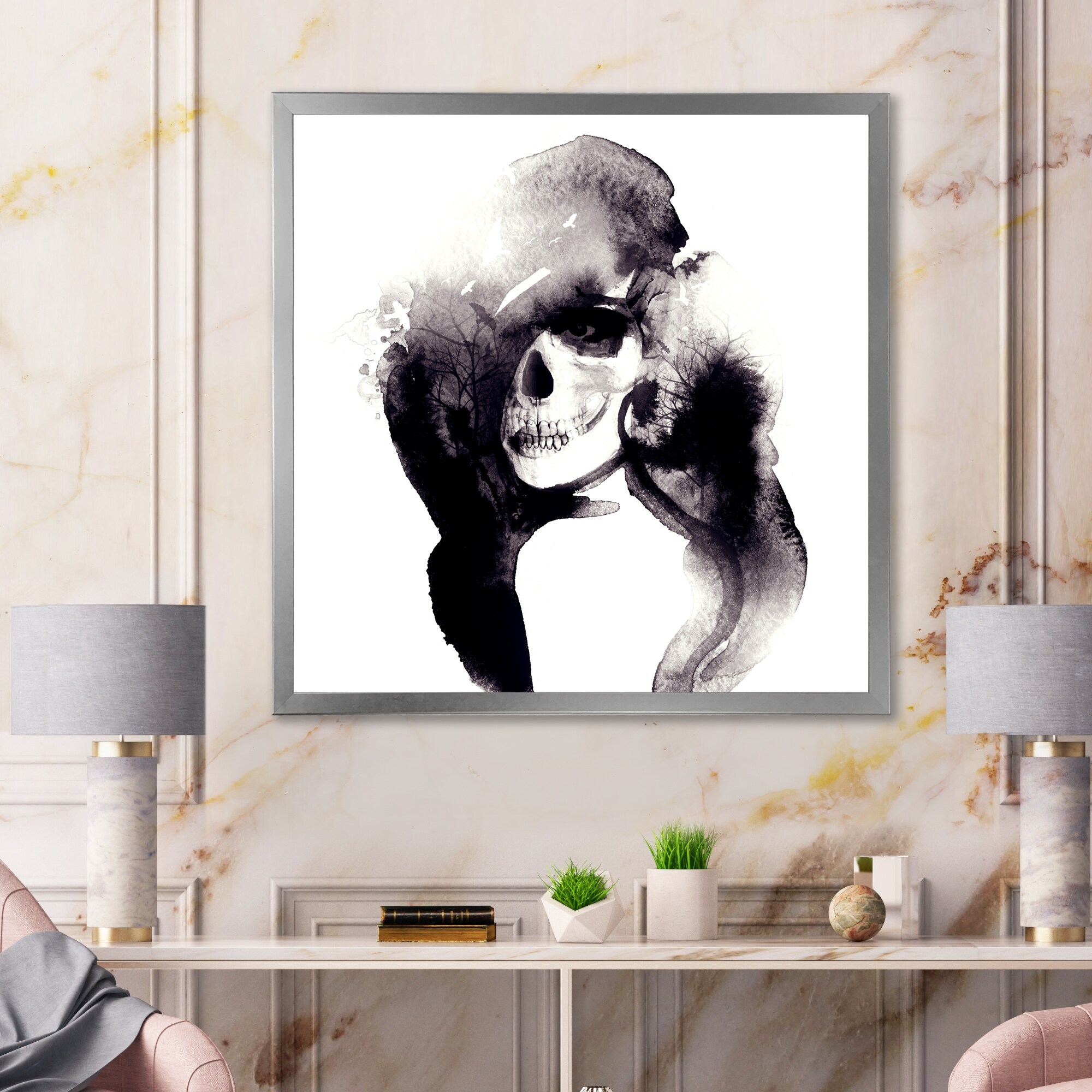 Designart "Female Silhouette and Floral Bouquet" Modern Framed Canvas Wall Art Print