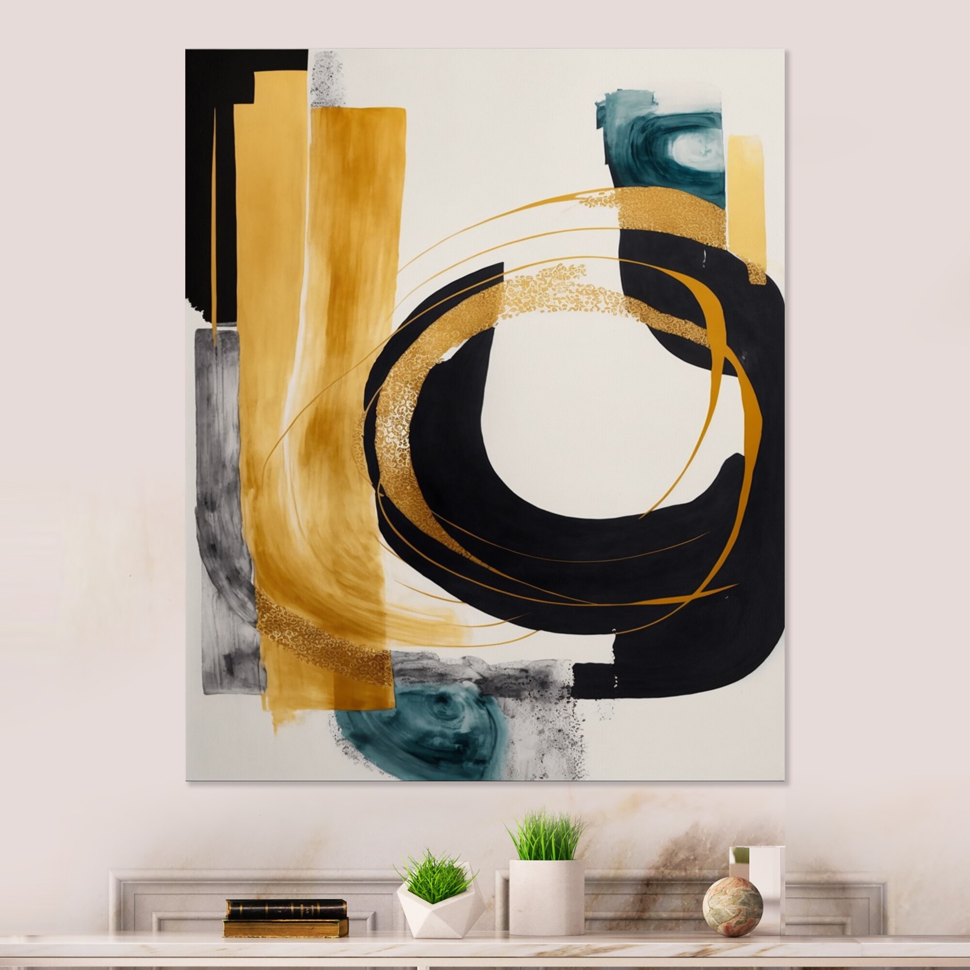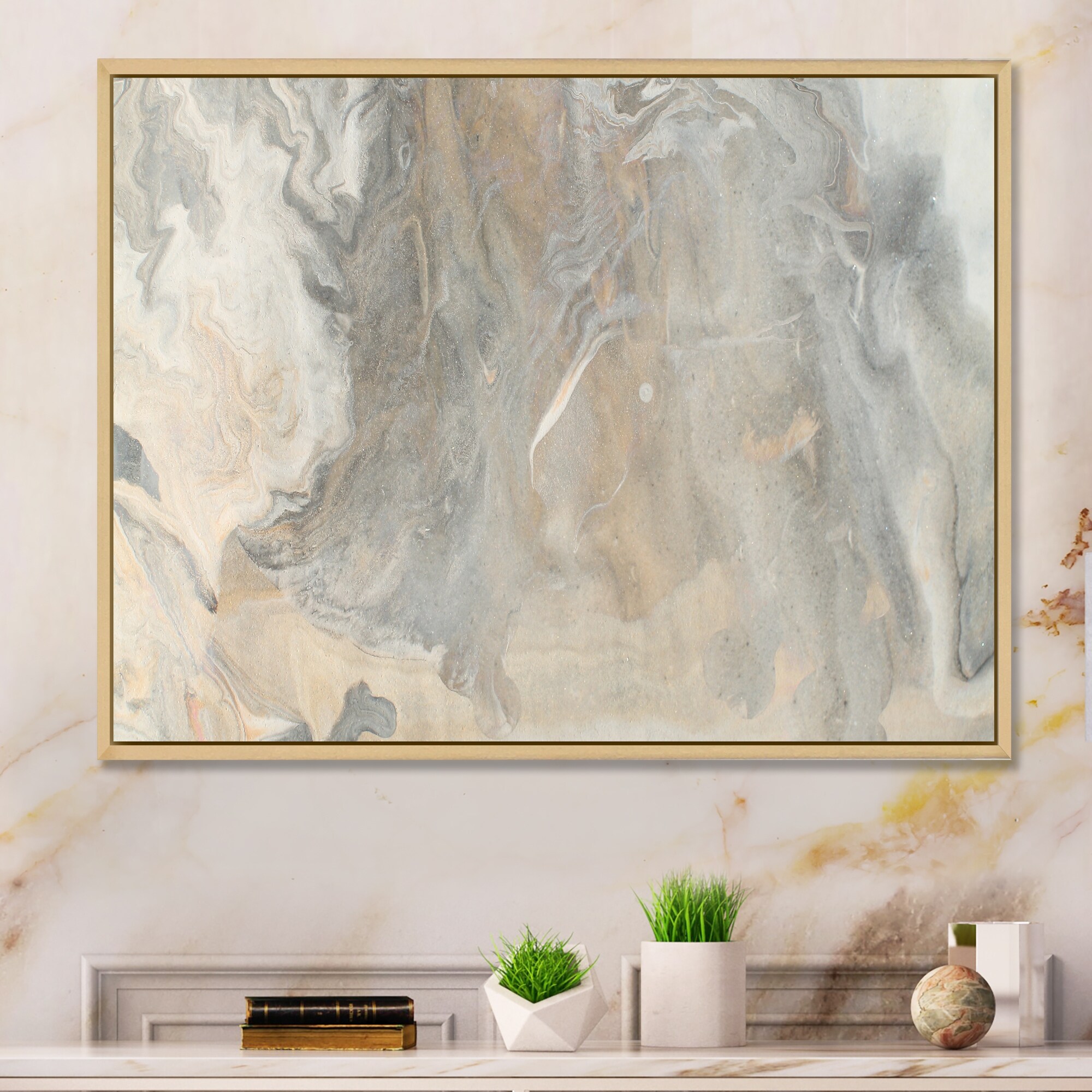 Designart "Gloden Black And Grey Marble Art Ripples VII" Abstract Framed Canvas Wall Art