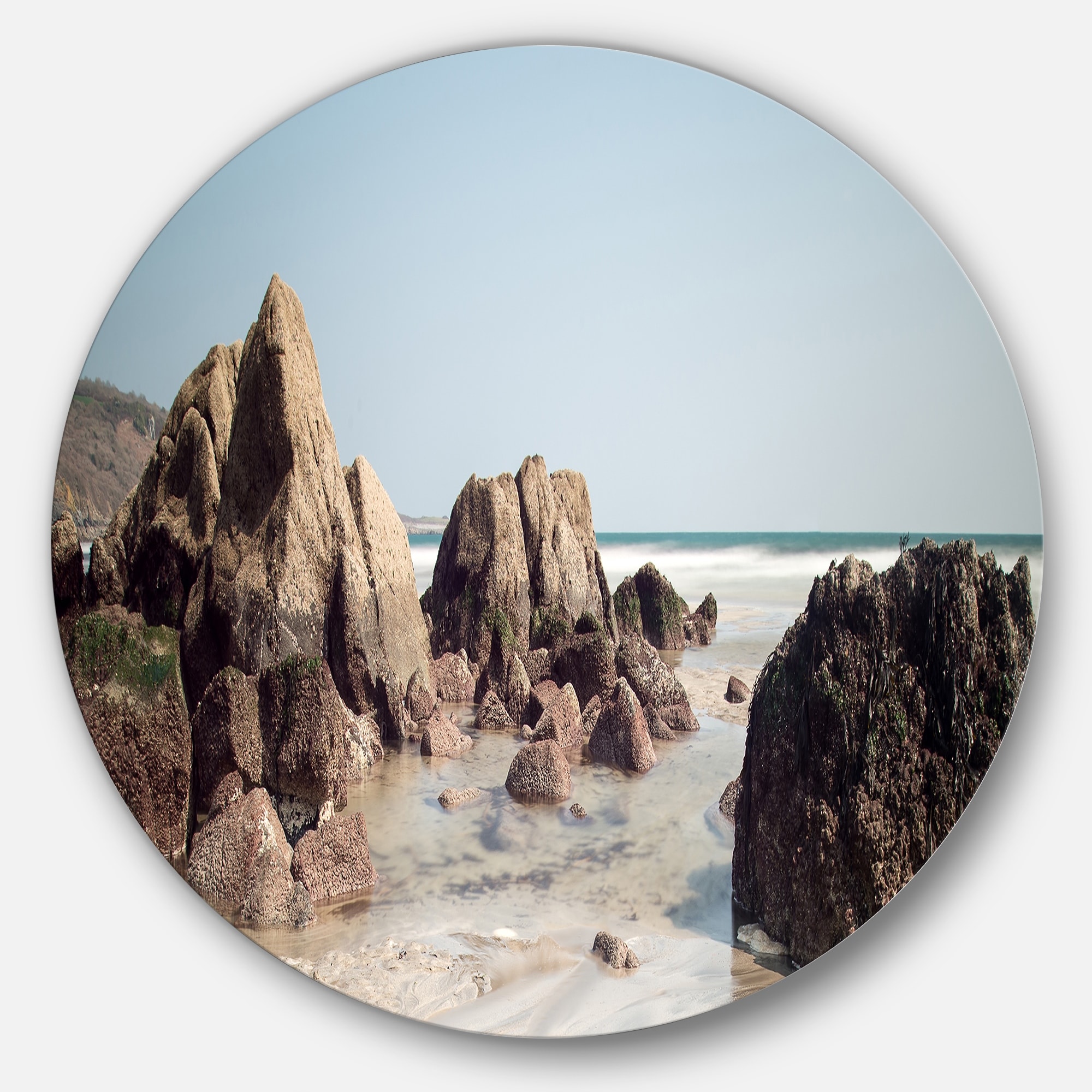 Designart 'Rocks at Coast Panorama' Seashore Large Disc Metal Wall art