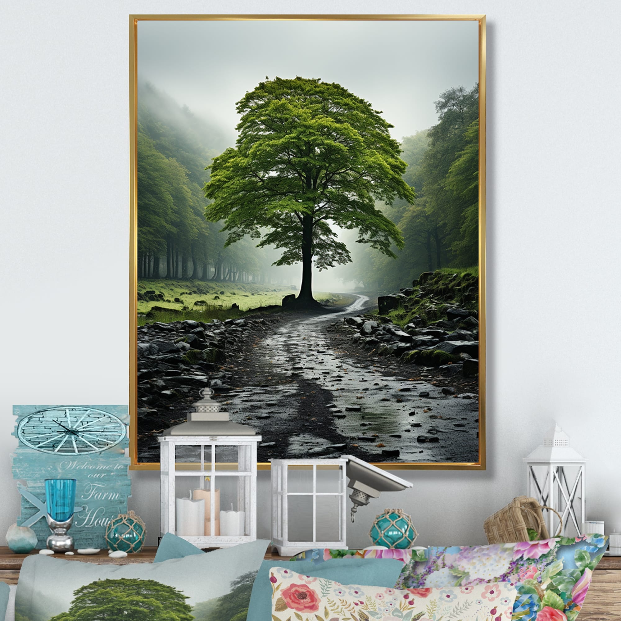 Designart "Green Trees Muted Treescape" Landscape Trees Framed Wall Art Prints