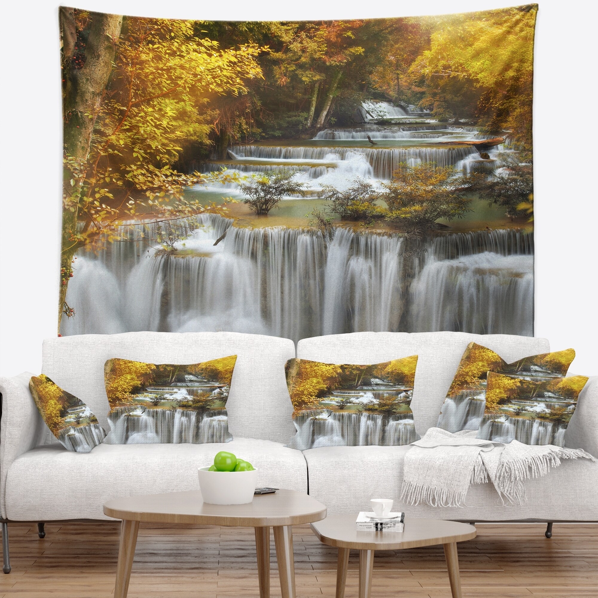 Designart 'Autumn Huai Mae Kamin Waterfall' Abstract Wall Tapestry