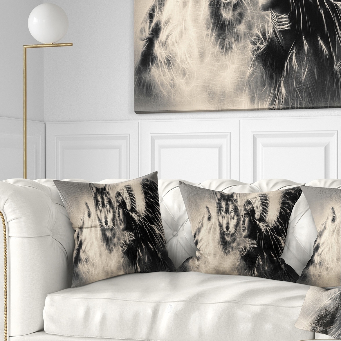 Designart 'Indian Warrior with Wolves' Abstract Throw Pillow