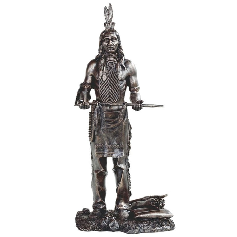 Q-Max 12"H Indian Warrior with Pipe Statue Native American Decoration Figurine