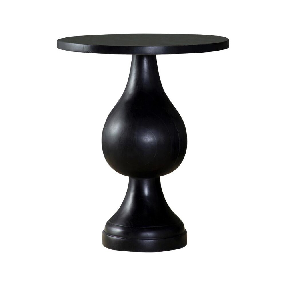 Round Top Wood Accent Table with Turned Pedestal Base in White Washed