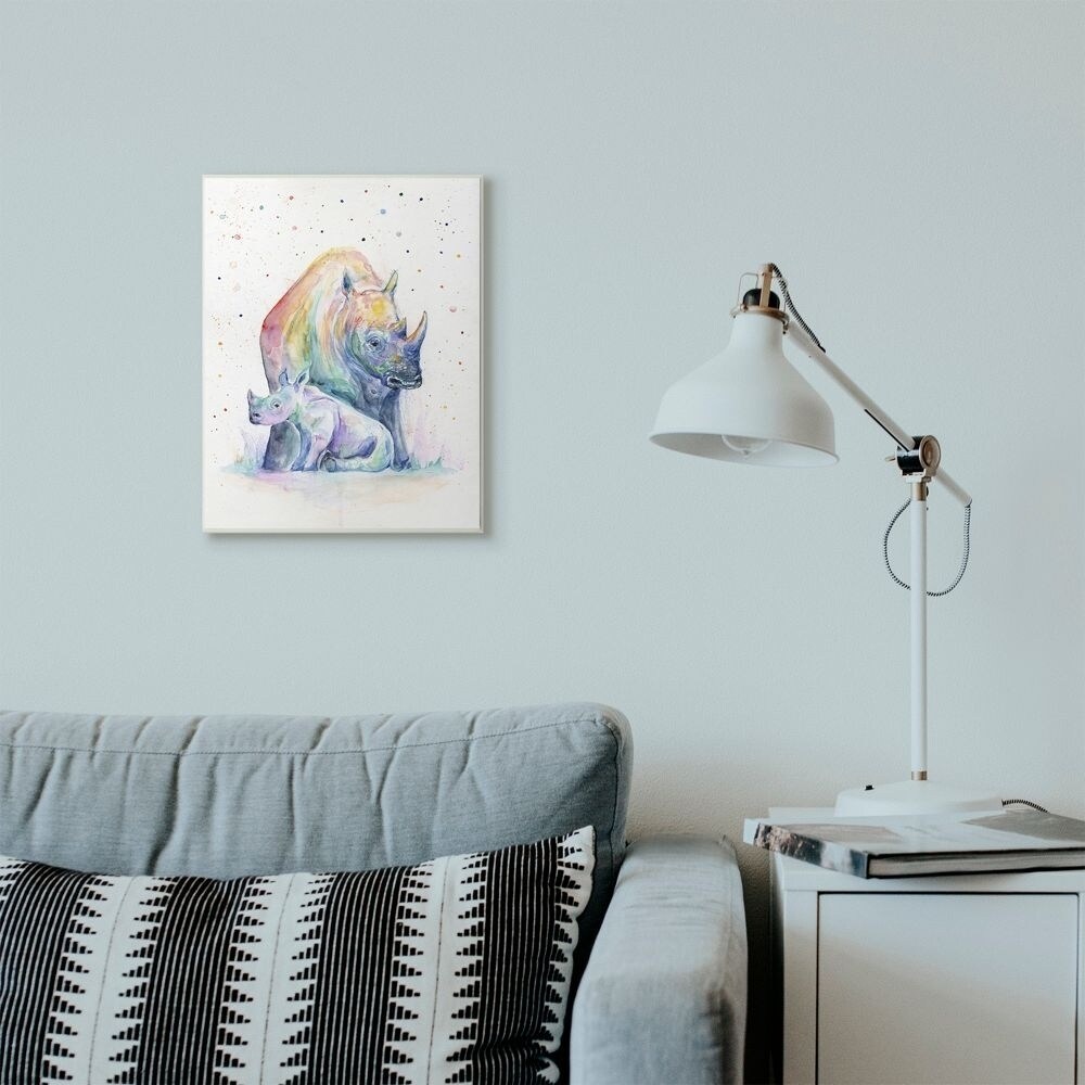 Stupell Industries Colorful Abstract Rhino Family Animal Watercolor Painting Wood Wall Art, Proudly Made in USA