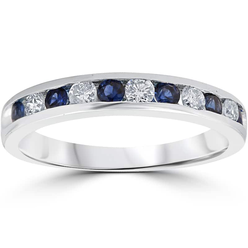 14K White Gold 1/3 ct TDW Diamond & Blue Sapphire Womens Wedding Stackable Ring (I-J,I2-I3)
