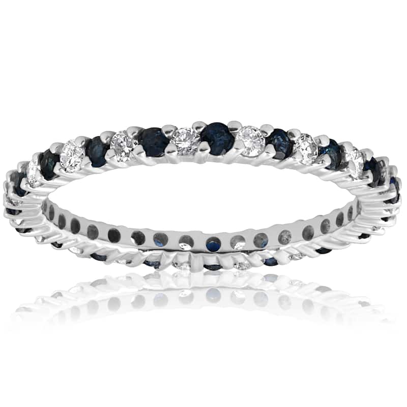 14k White Gold 1/2ct Blue Sapphire Diamond Wedding Band Stackable Eternity Ring (I-J,I2-I3)