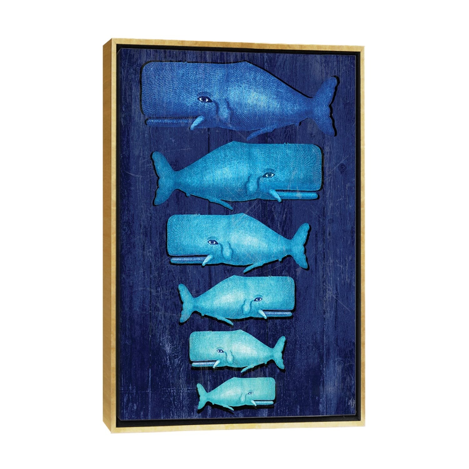 iCanvas "Whale Family Blue on Blue" by Fab Funky Framed