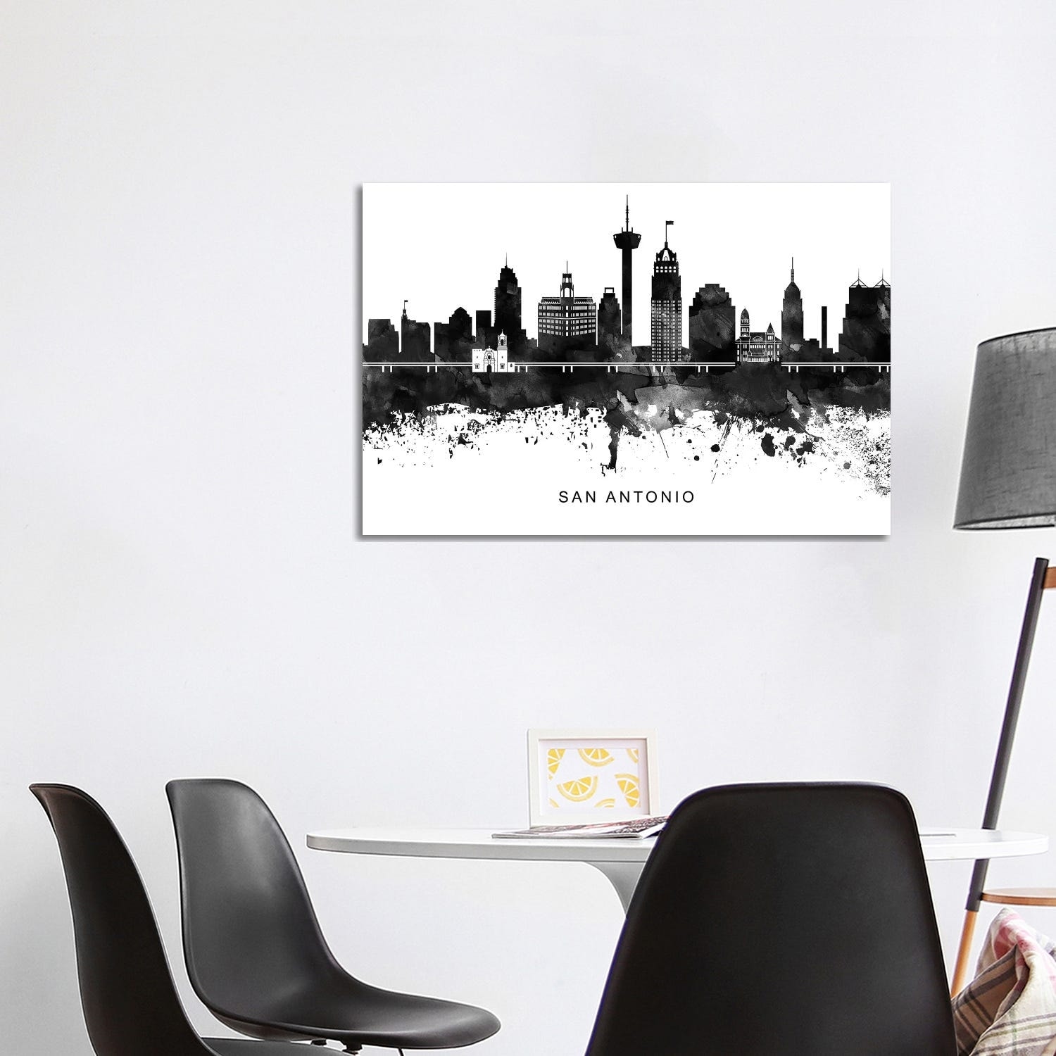 iCanvas "San Antonio Skyline Black & White" by WallDecorAddict Canvas Print