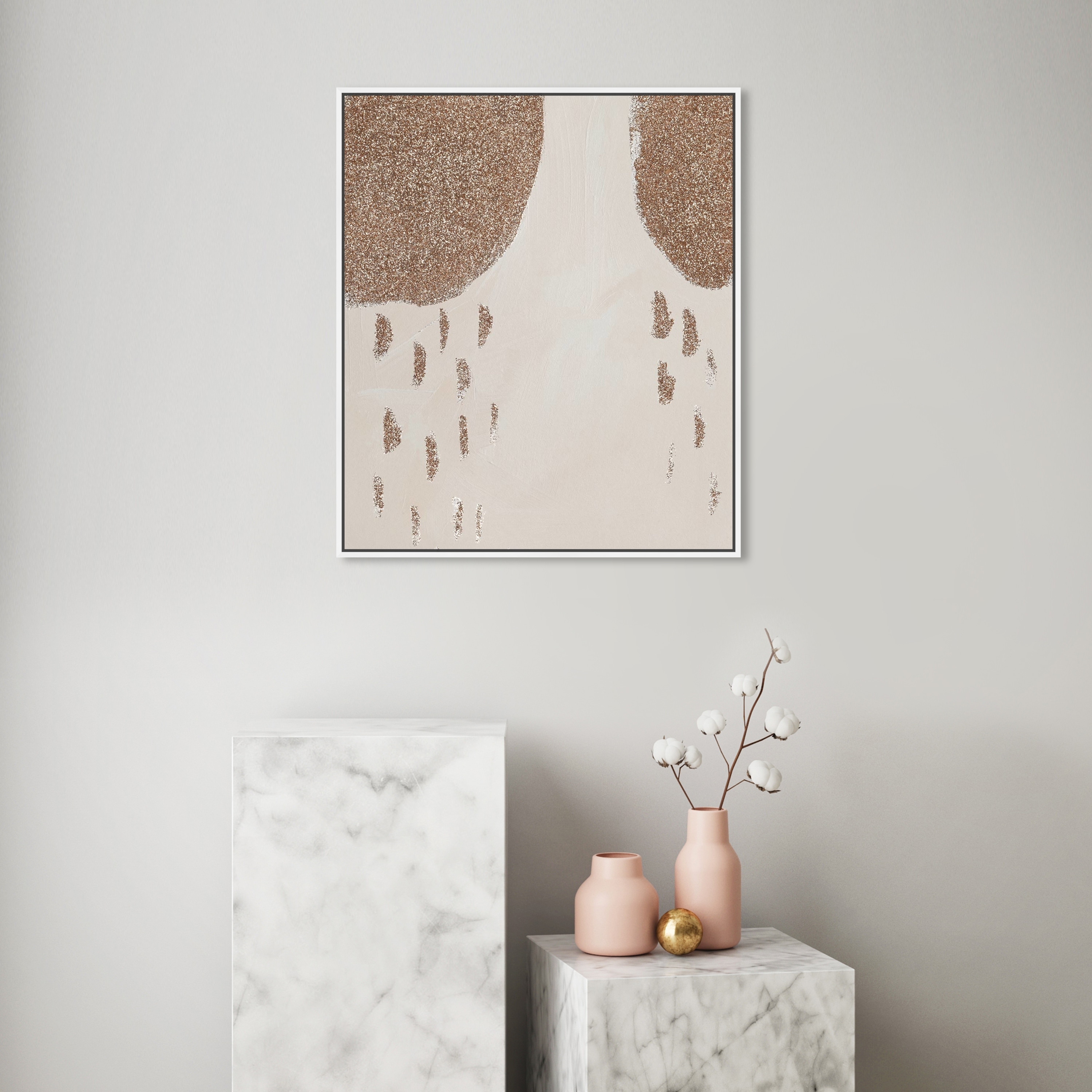 Oliver Gal 'Glitter Rain' Abstract Wall Art Framed Canvas Print Paint - Gold, White