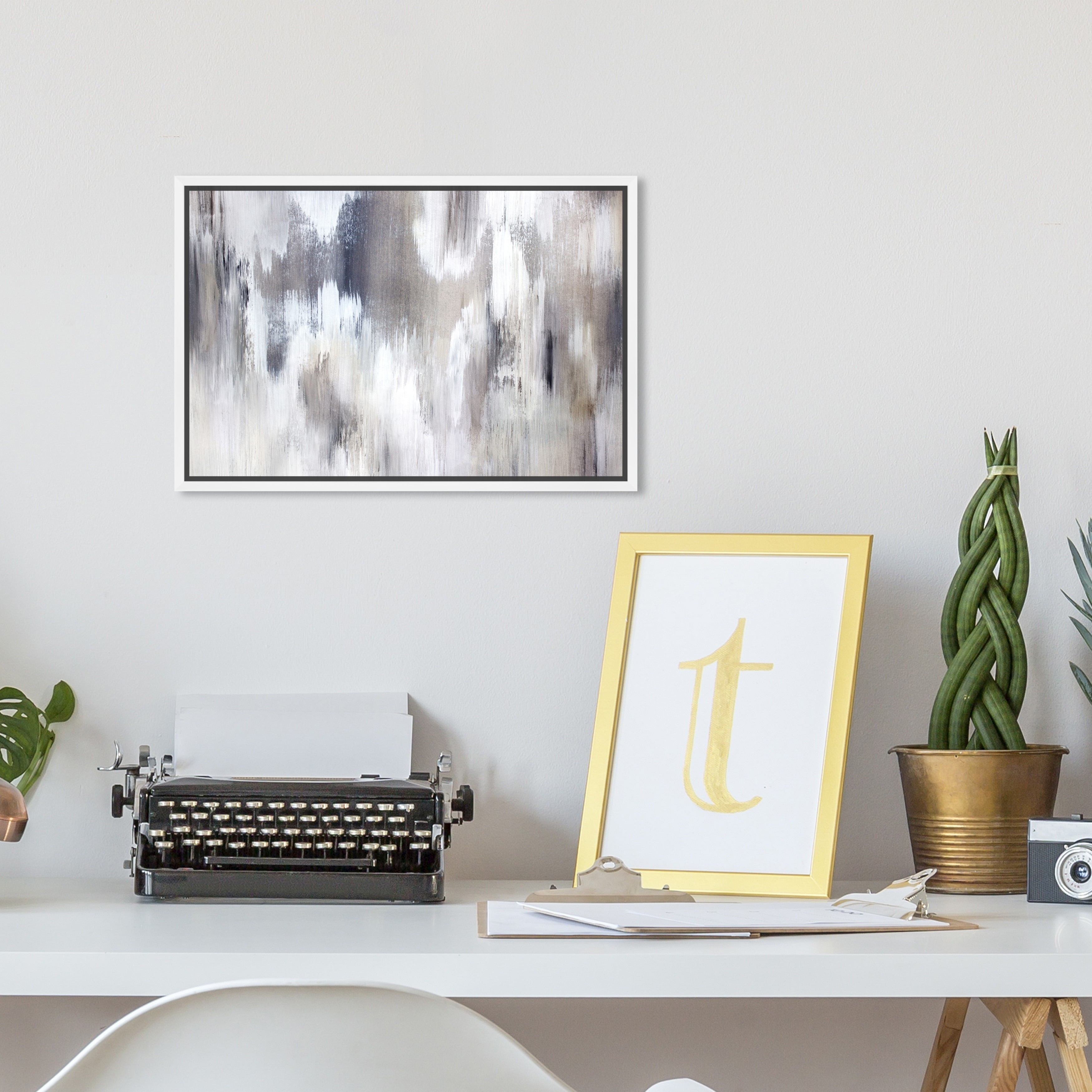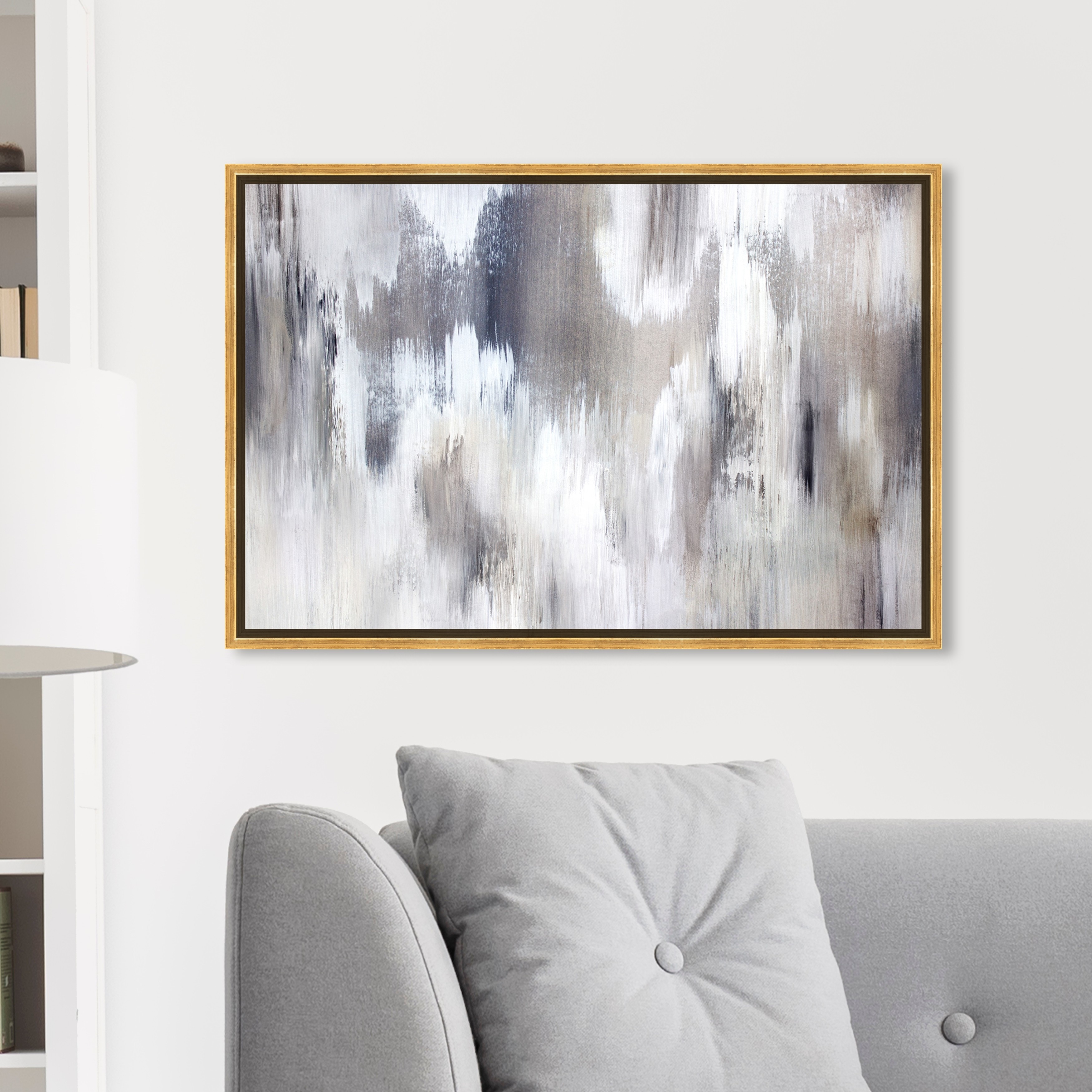 Oliver Gal 'Gentle Falling Shades' Abstract Wall Art Framed Canvas Print Paint - Gray, White