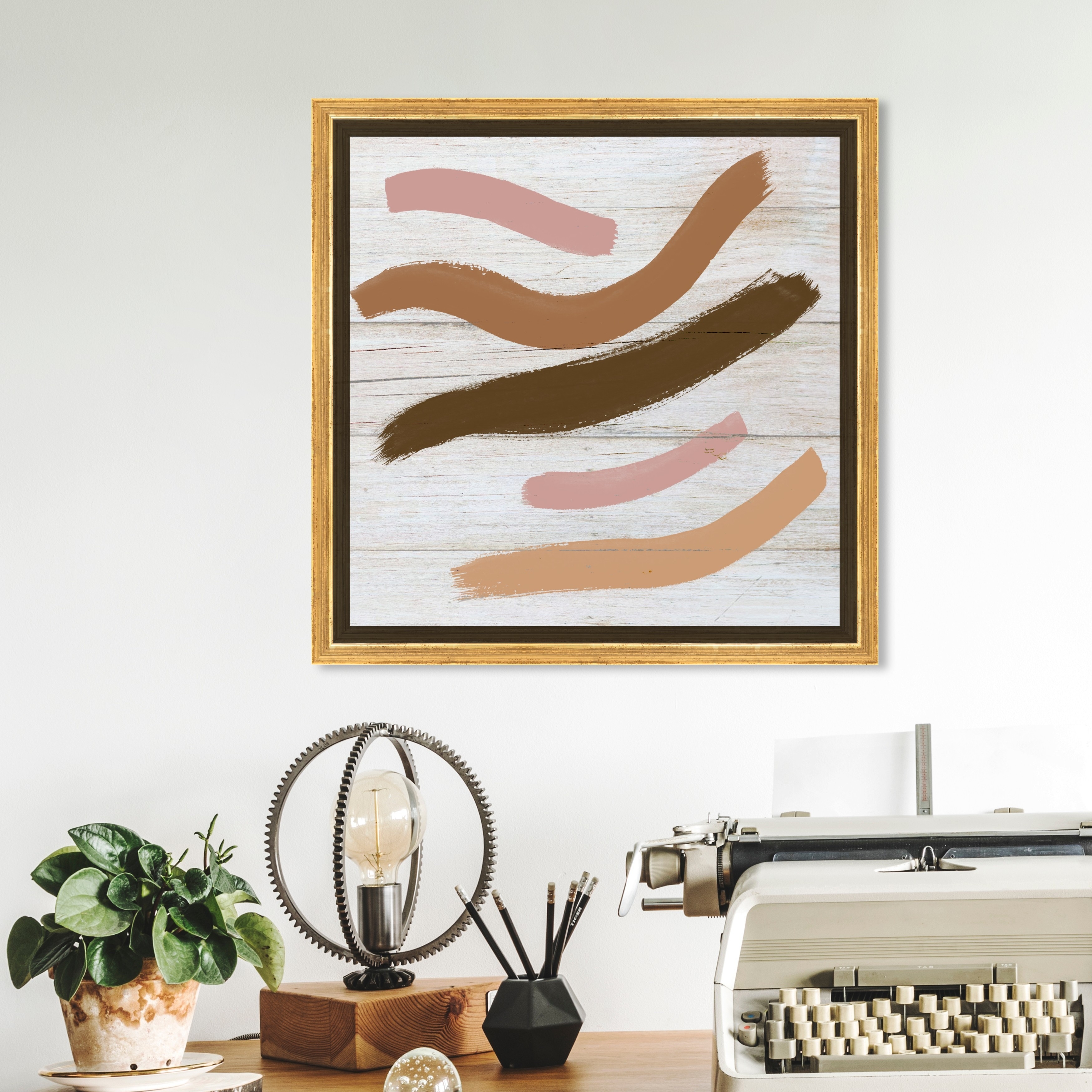 Designart 'Painted Simple Form Neutral on White' Modern Geometric Print on Natural Pine Wood - Brown
