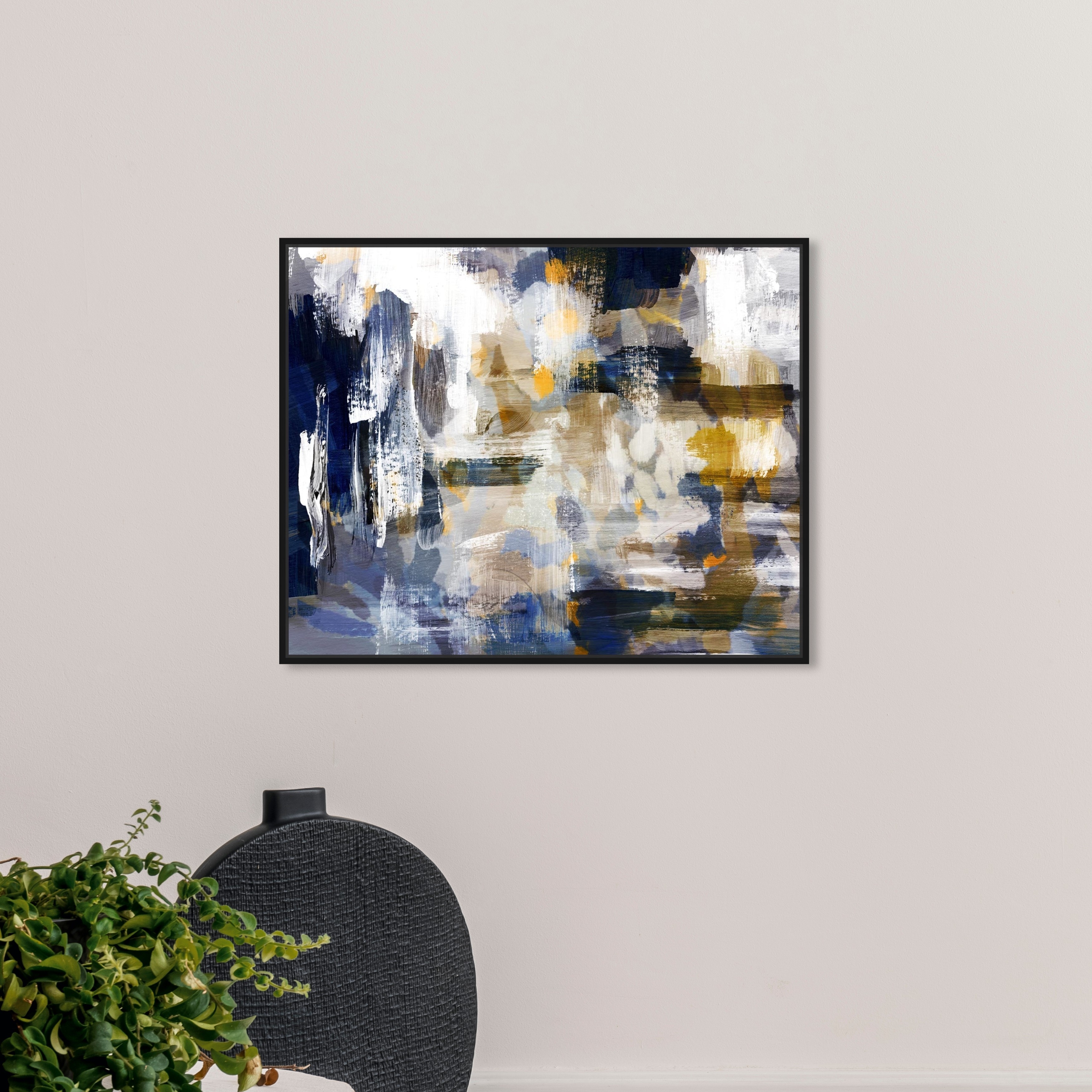 Oliver Gal 'In Neutral Eyes' Abstract Wall Art Framed Canvas Print Paint - Blue, White