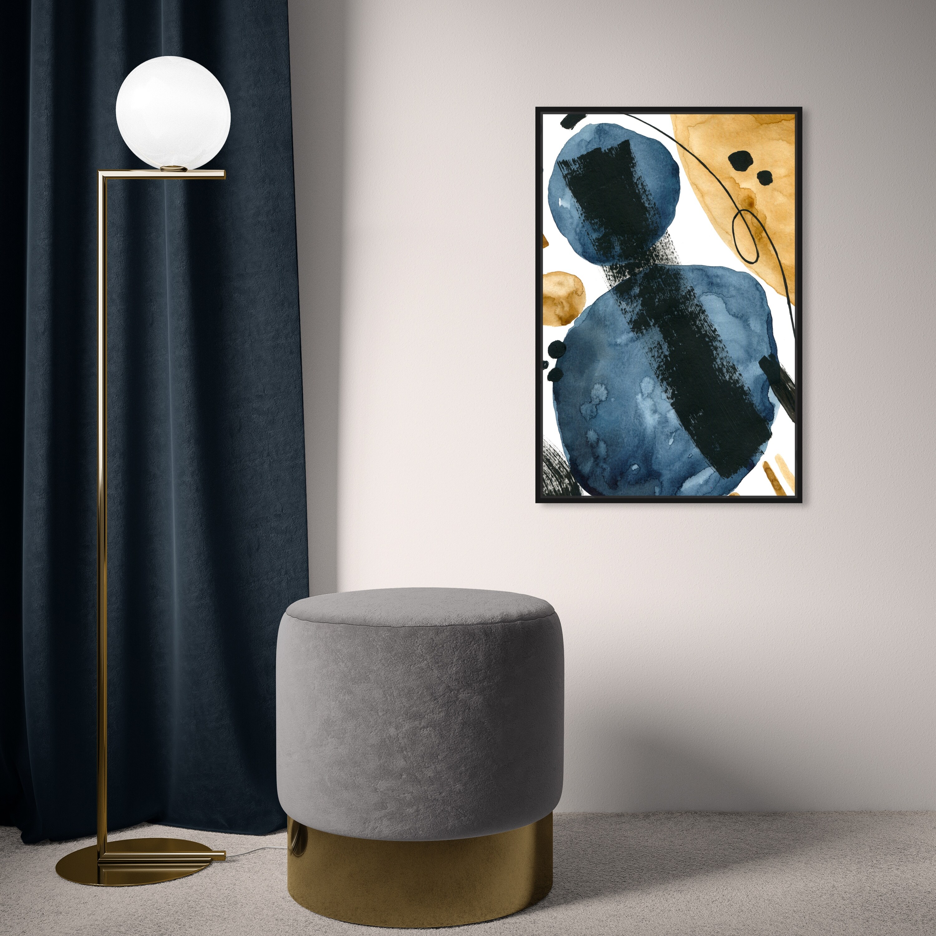 Oliver Gal Abstract Wall Art Framed Canvas Prints 'Baritone' Paint - White, Blue